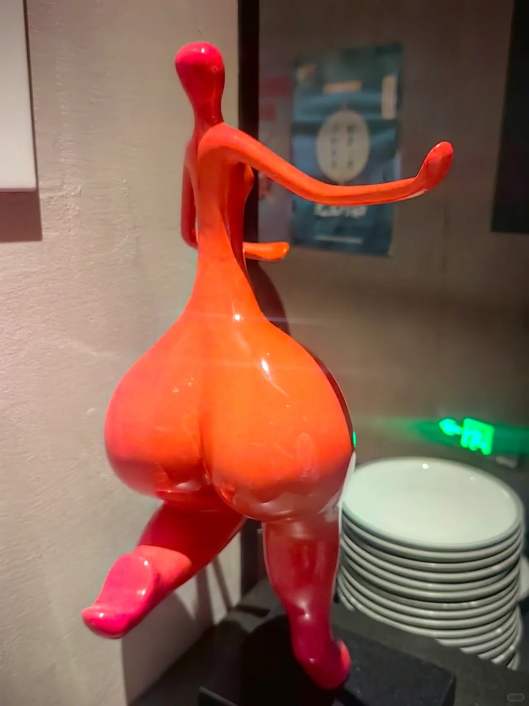 我和女友那天都认为晚饭应该吃沙拉减肥,这当然是伪命题,结果是废物一般吃了一大盆毛血旺。直到口歪眼斜、肚子突出。盆见底后我俩垂头丧气,相视无言。一斜眼,注意到座位旁边有个古怪雕塑,是个腰极细臀极大的女人。我们走过去看着她,她肯定早已习惯被各种眼光审视,习惯成为人们凝视下的客体。