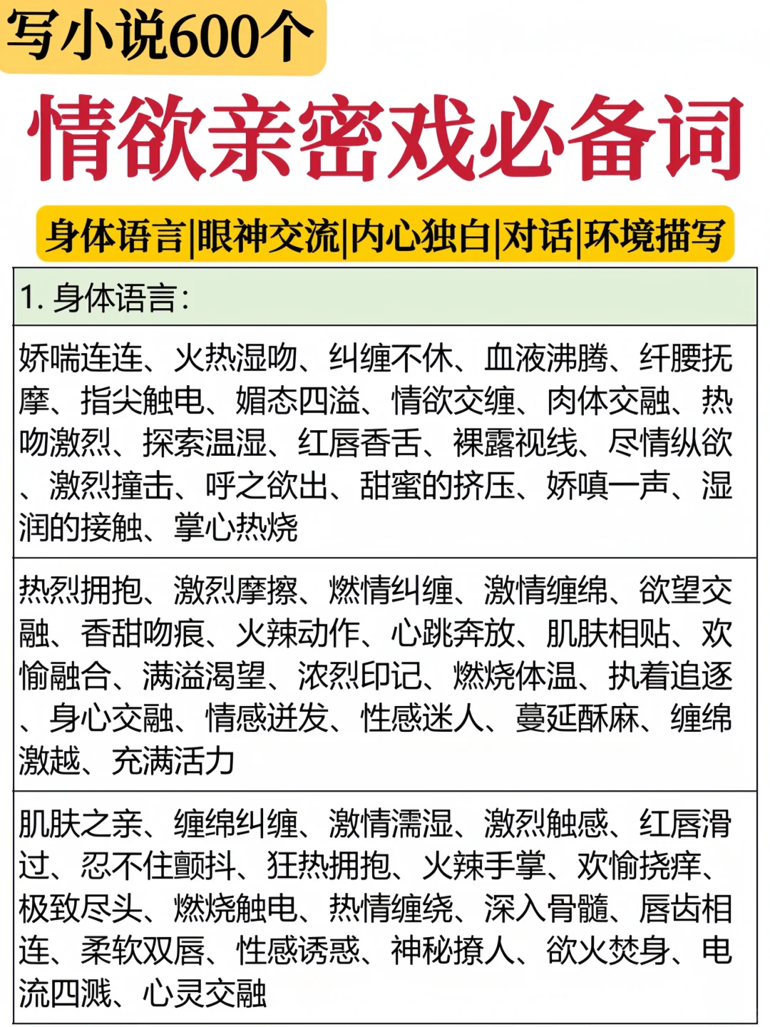 600个小说写情欲缠绵的必备词❗性张力爆棚