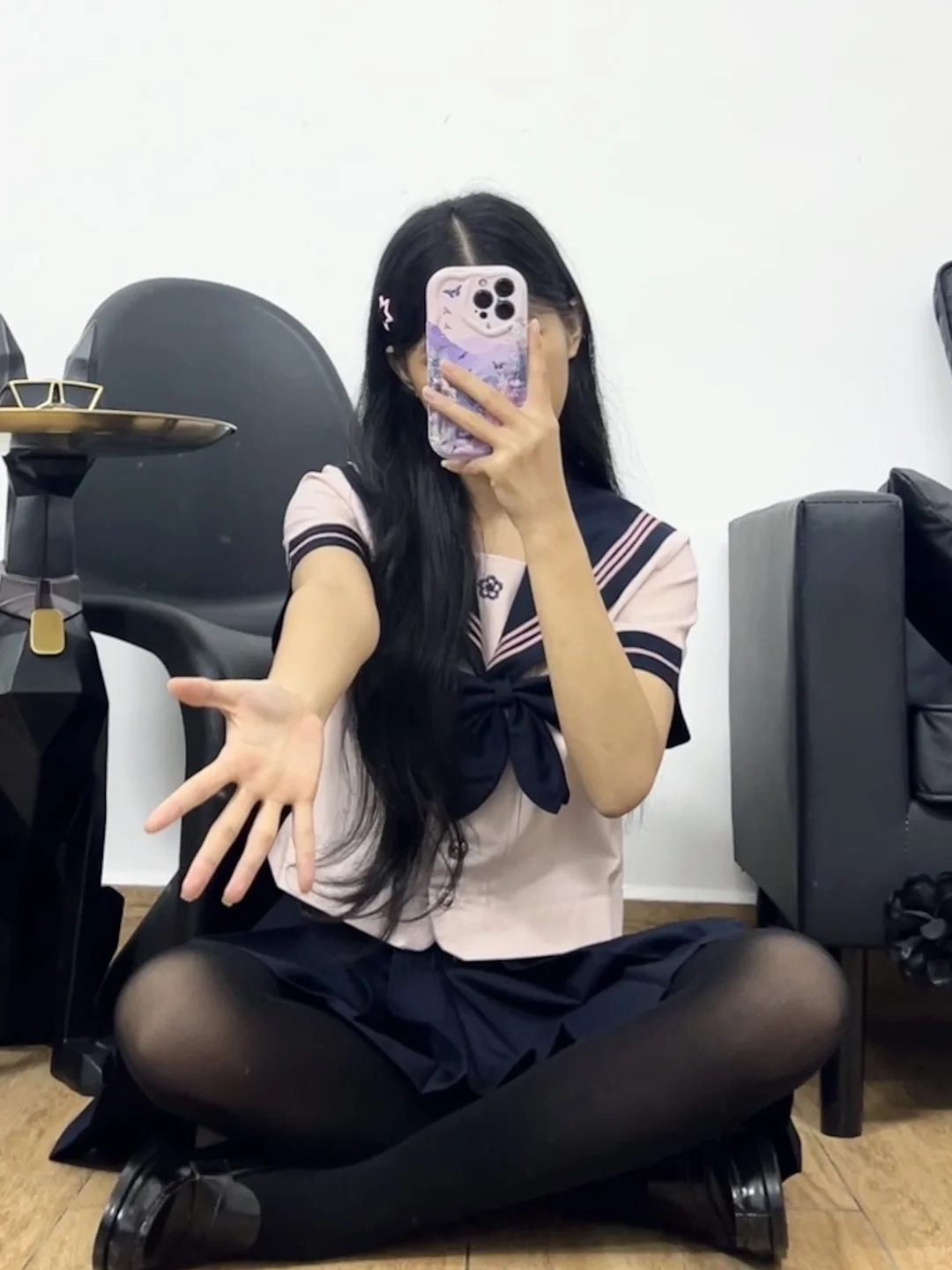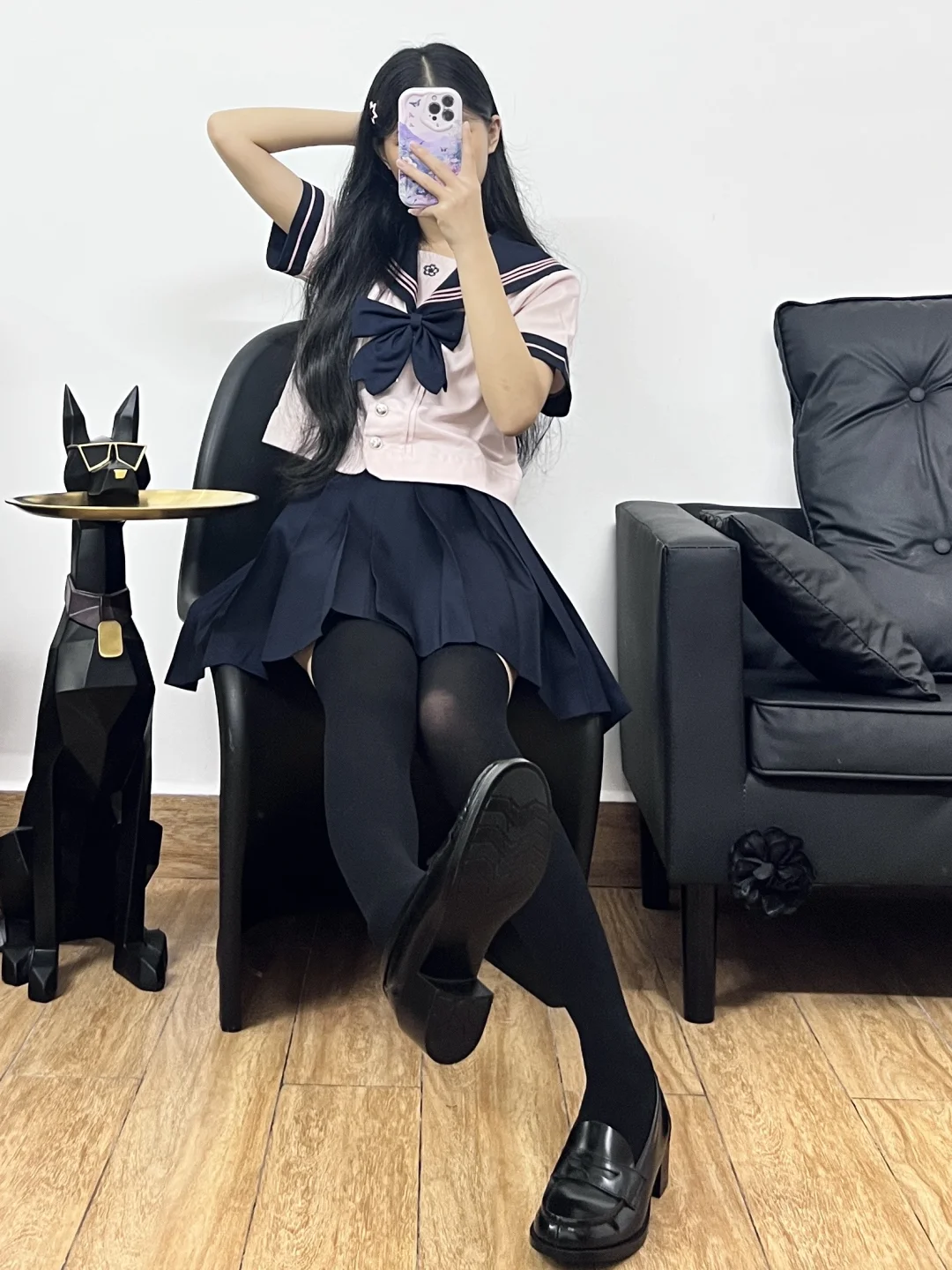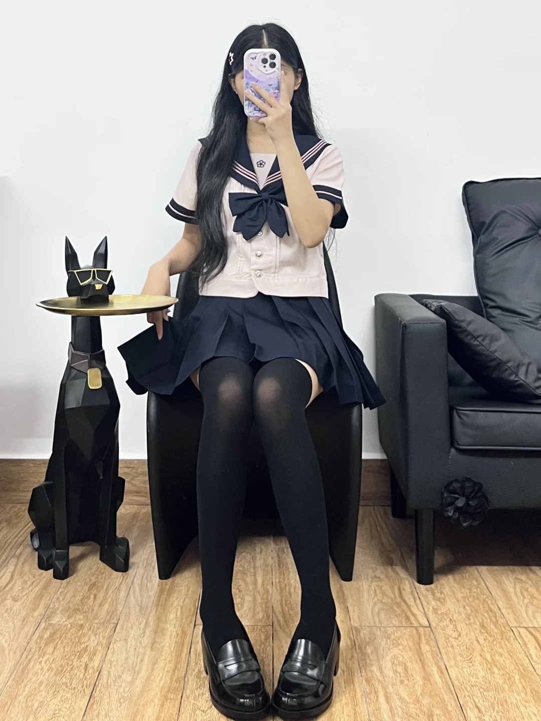 过膝袜ootd→一套水手服+过膝袜+小皮鞋👞