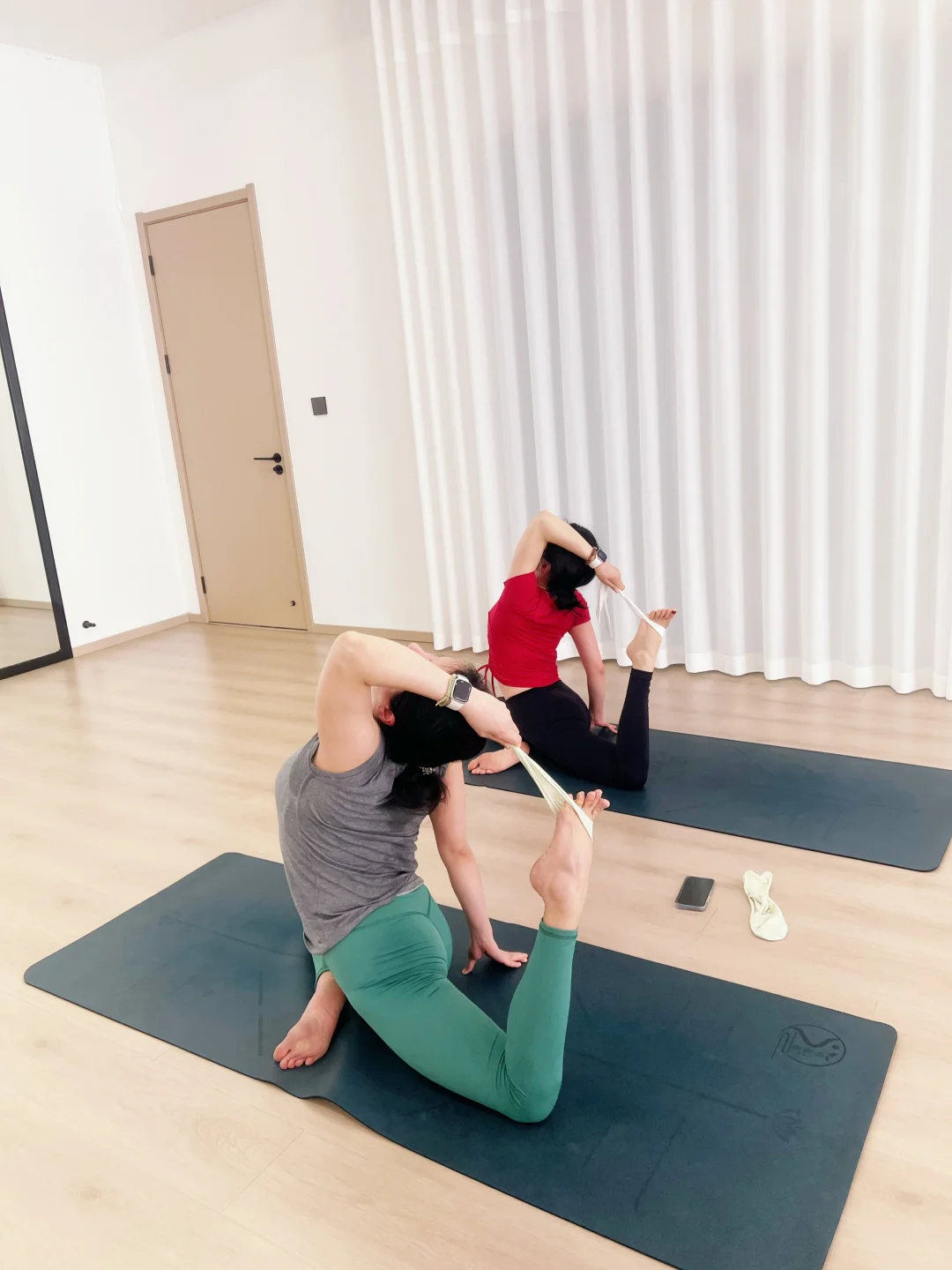 她是最后一个加入我们的新人。她从瑜伽小白跨越到高手只用大概短短一年吧,这期间是100节拉拉的私教和穿插的每周一两节小课和周六提升课。也就是说每周除了周日休息,每天都会上课。我以前不相信网上有人说的一年解锁倒立后弯神猴等等所谓的高体,看到她我信了。