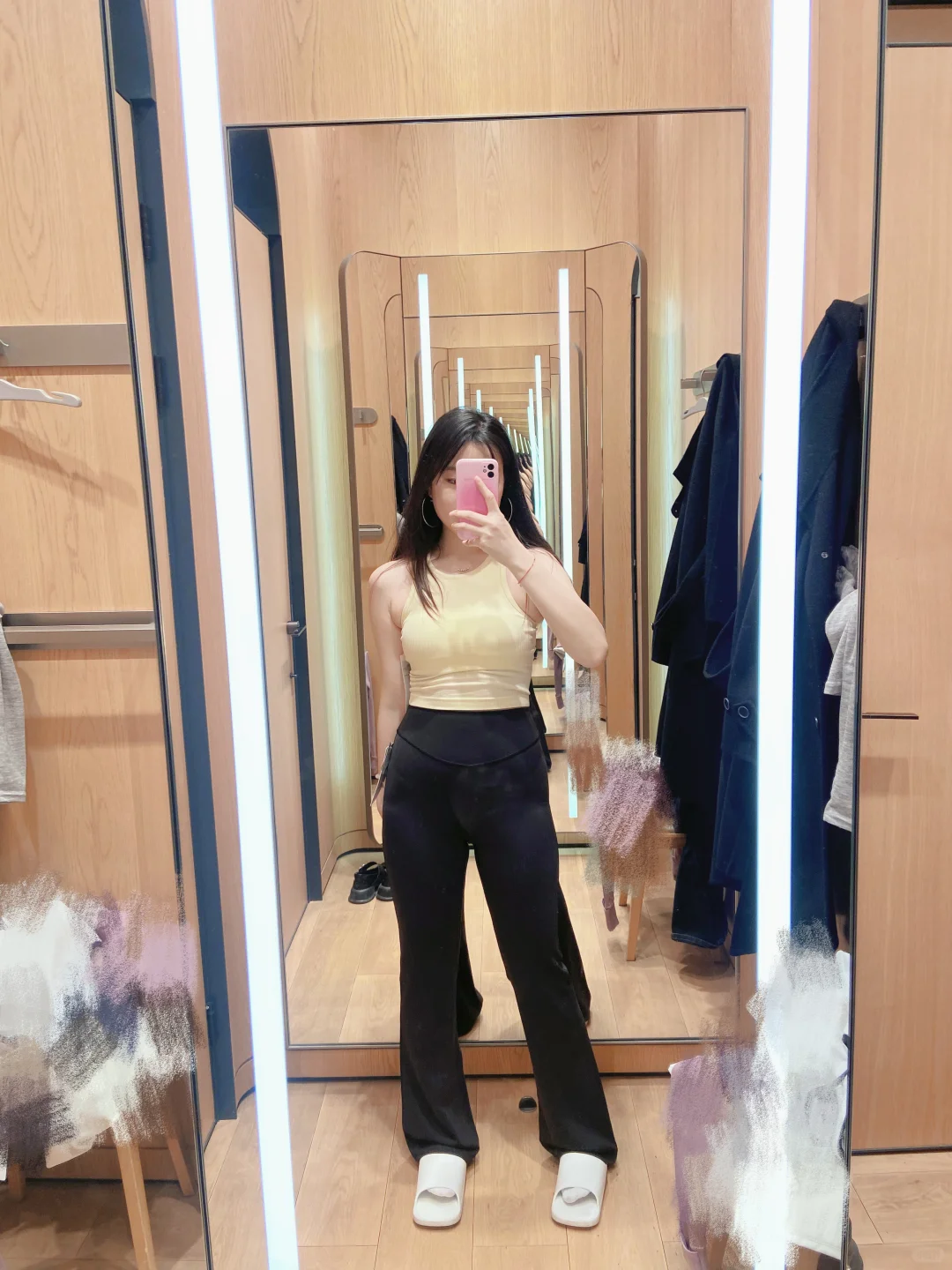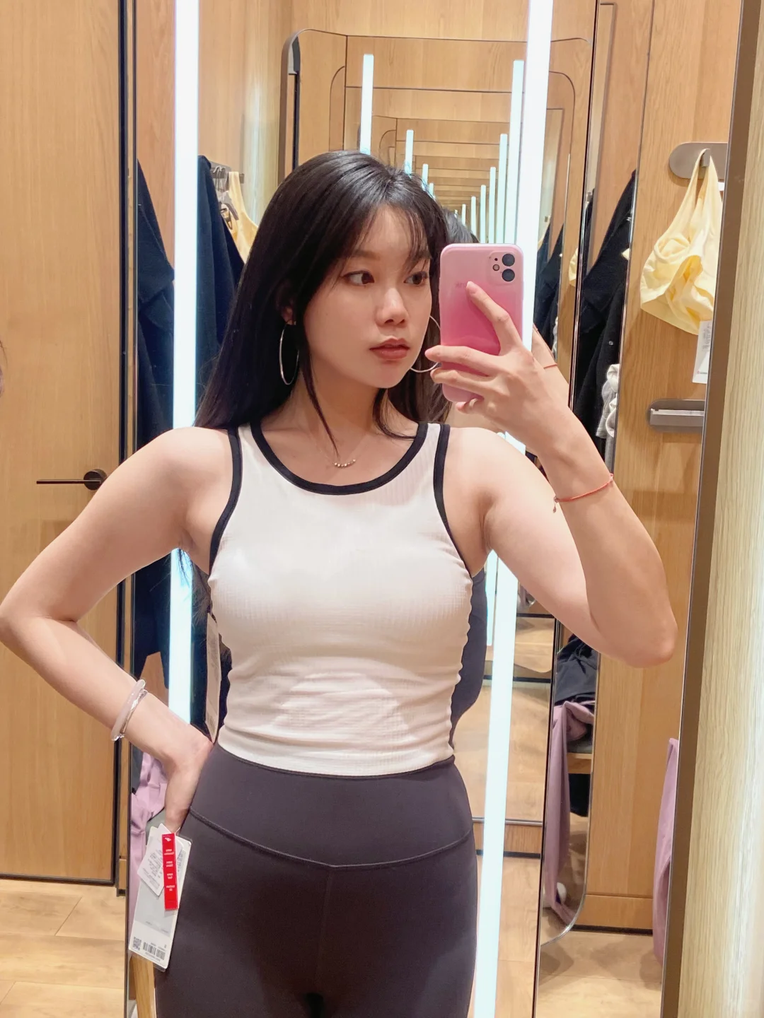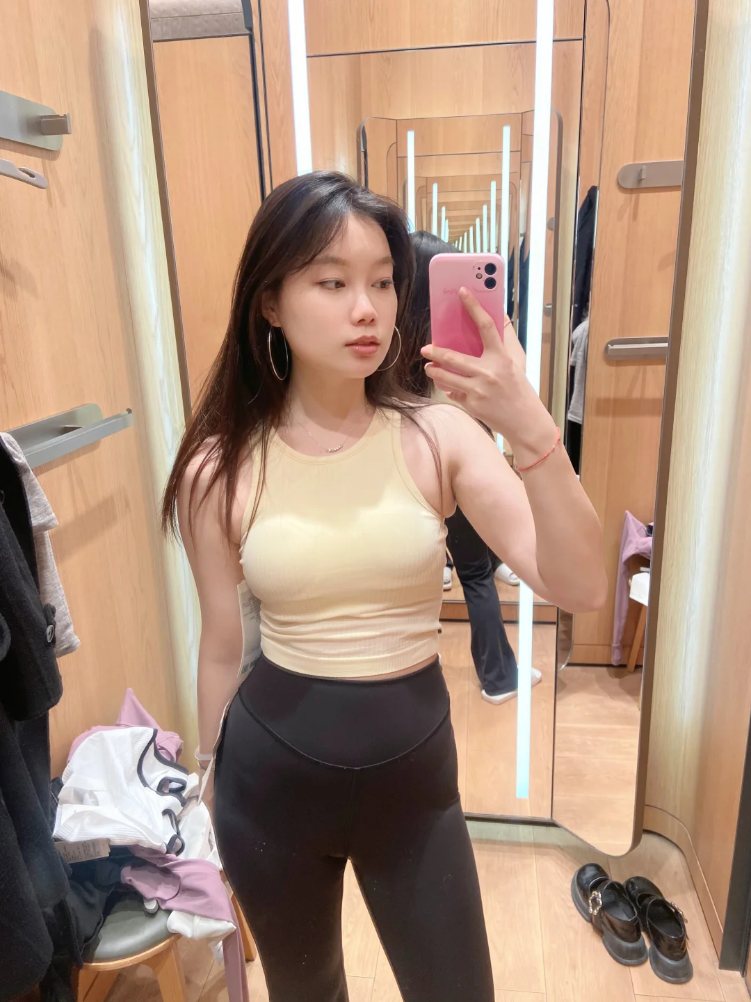 第5⃣️件:他们家的背心都不适合我!!尺码小的都显幅乳!!!显身材但是显身材,但是腋下有肉的妹妹穿上会挤肉,如果搭载外套里面倒是个不错的选择,因为挺凉快挺显身材的,自带胸垫的,黄色亮眼显白。