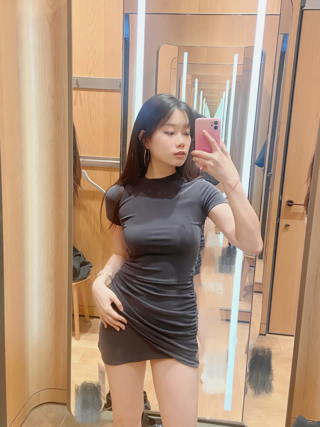 第1⃣️件:(尺码为xs)图1跟图2是一个款,就颜色和尺码不同,喜欢第2⃣️件的颜色,S尺码没了,试的时候脖子特别勒,以为是高领的呢,图1⃣️就尺寸很舒服,整体的材质跟版型都是很好的,对于微胖的女生还是很有好的。本人小腿粗,就上半身很好,下半身显短,整体为包臀裙。满分10分打8分
