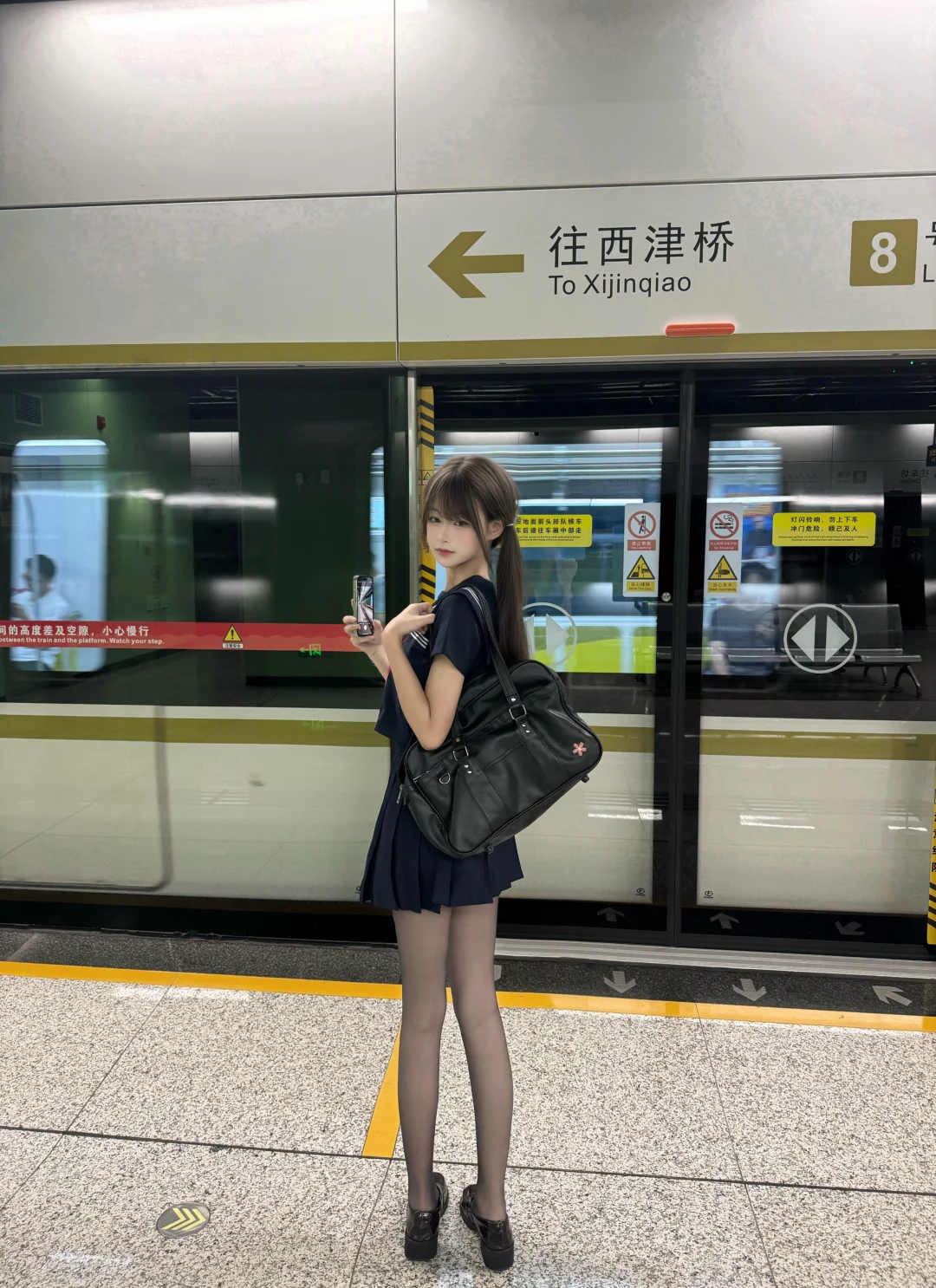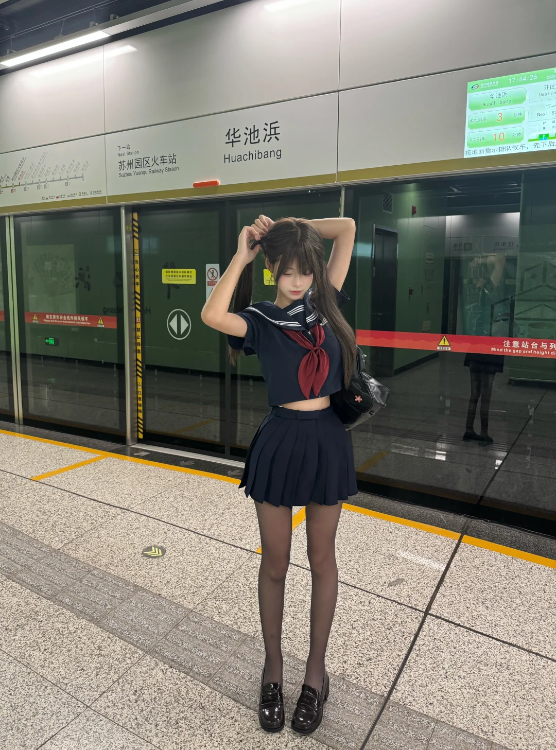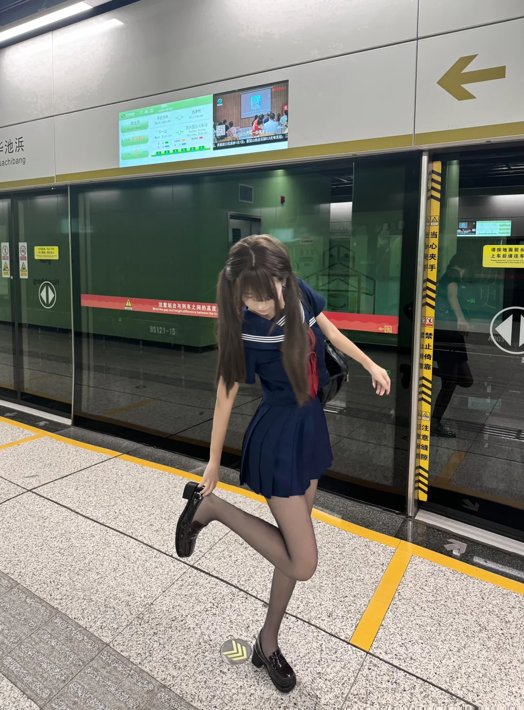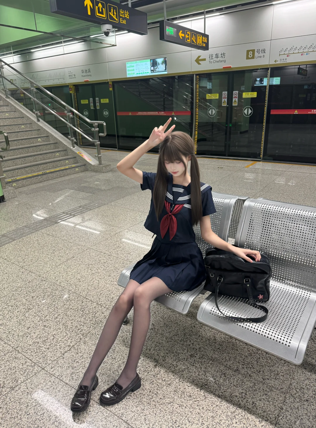 水手服jk制服地铁拍照姿势