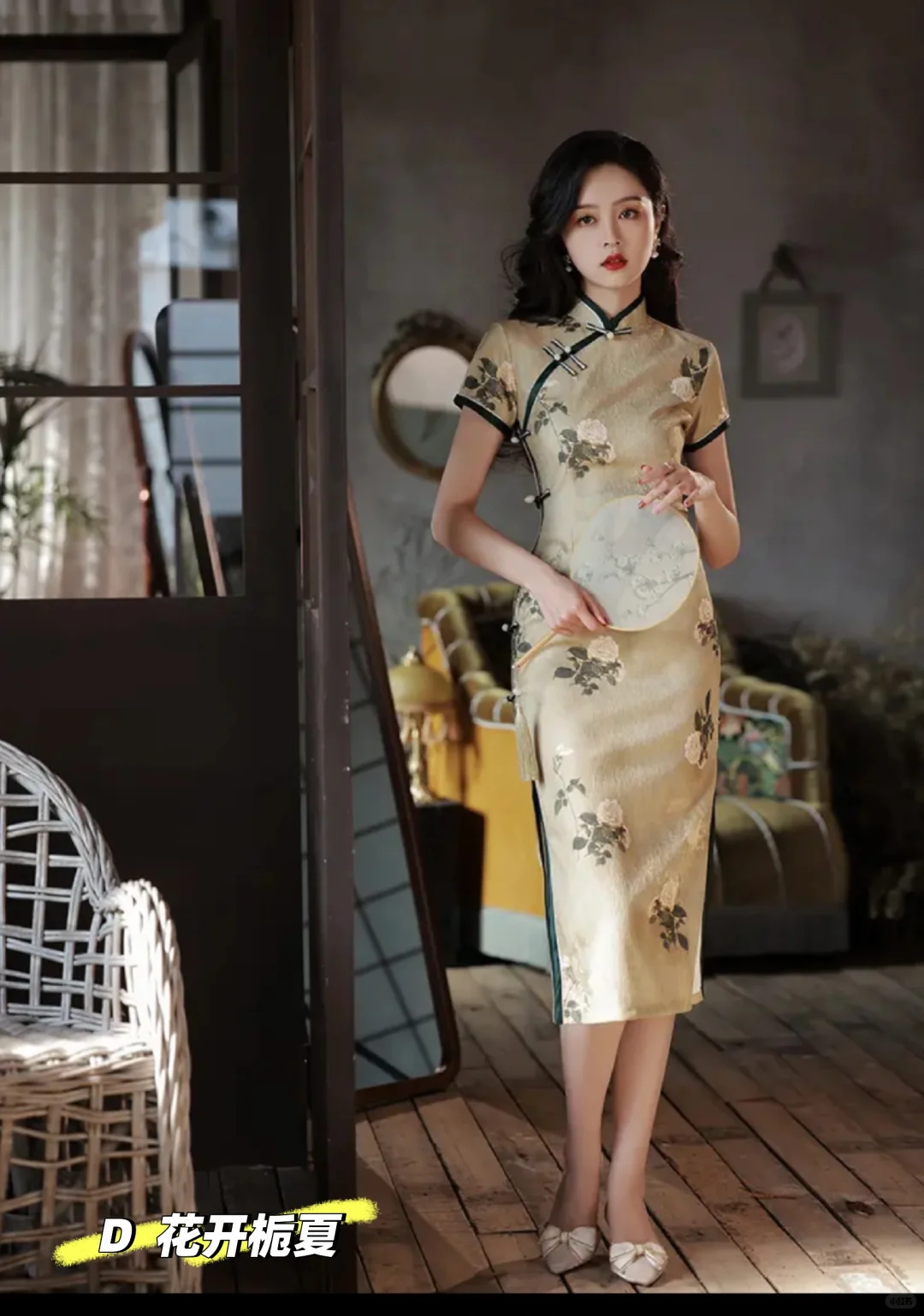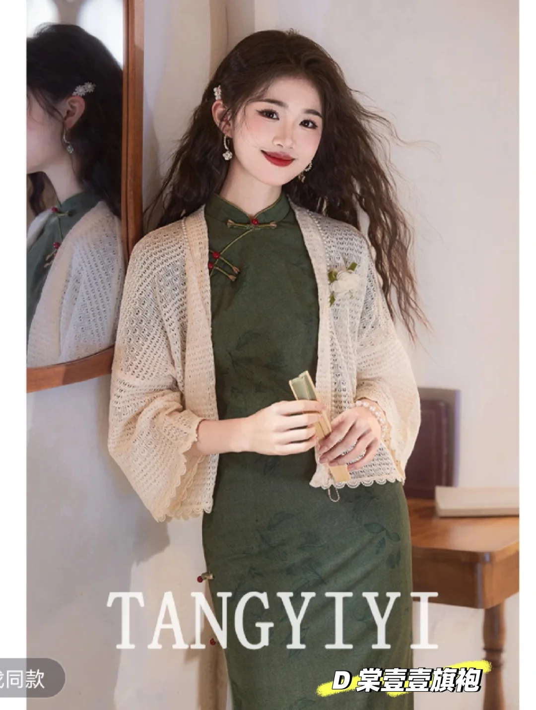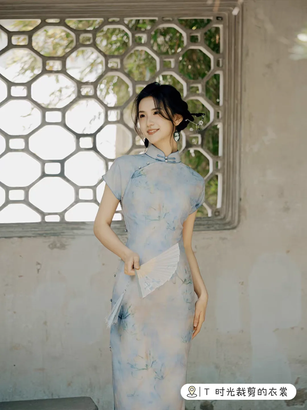 图二图片看着不怎样,但是上身很好,尤其是深色旗袍,照相特别出片,图三和图二一家店铺,图三适合日常,清新淡雅,双层面料,而且透气不会褶皱