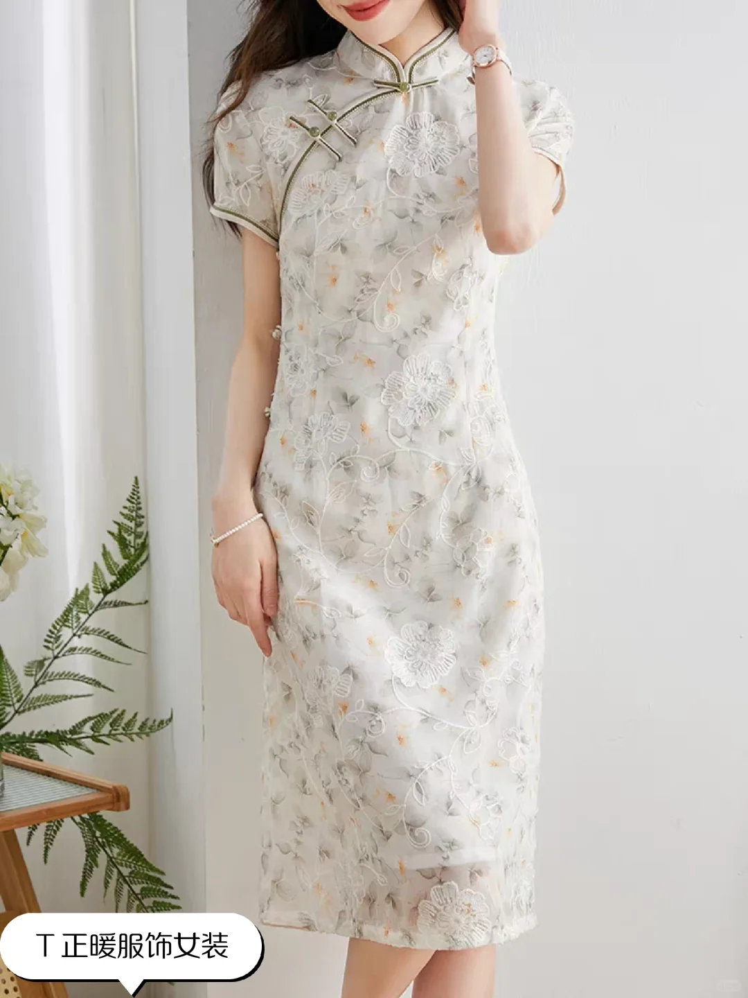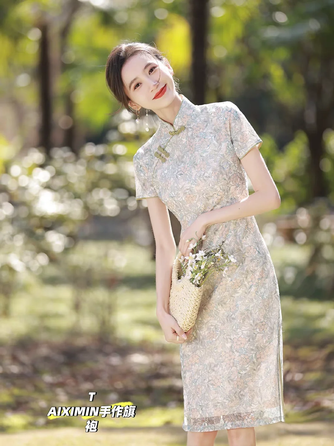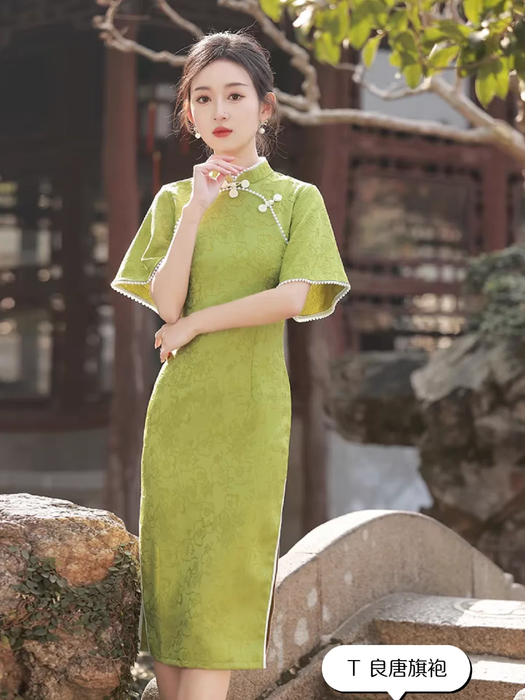 图二图片看着不怎样,但是上身很好,尤其是深色旗袍,照相特别出片,图三和图二一家店铺,图三适合日常,清新淡雅,双层面料,而且透气不会褶皱