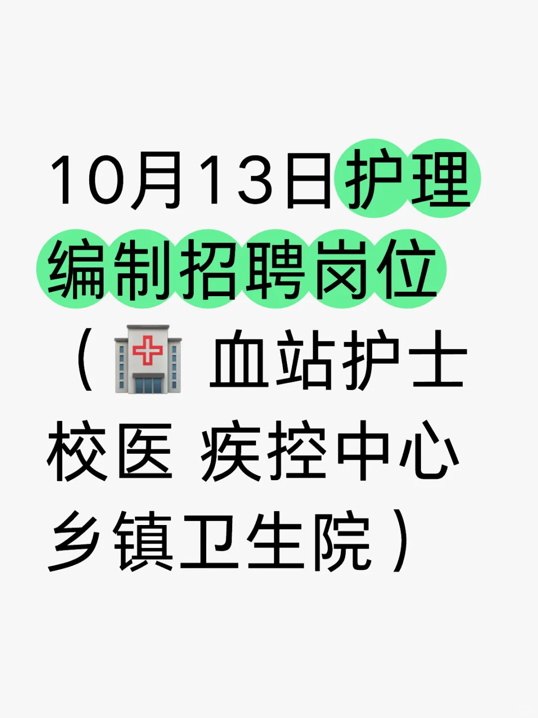 10月13日护理编制招聘岗位(🏥 血站护士)