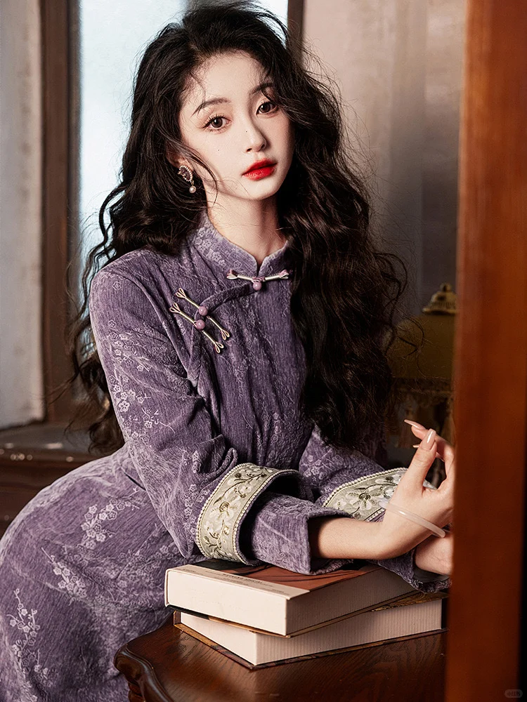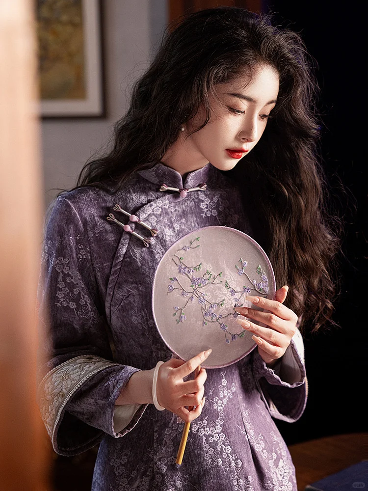 💜长袖复古紫旗袍 | 化身民国大小姐💜