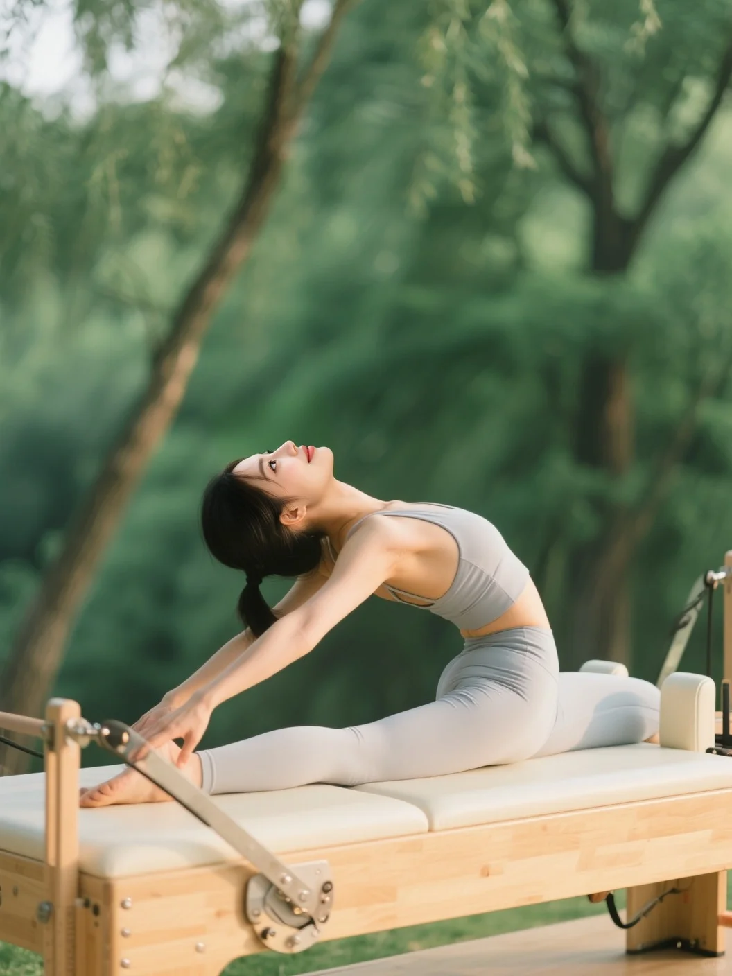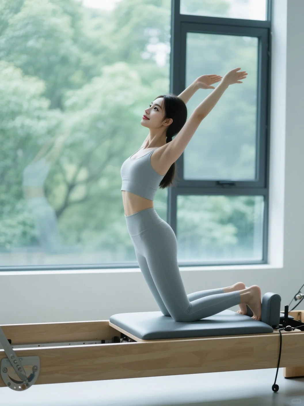普拉提大器械的精准控制,配合窗外的树影婆娑🌳 每一次推拉、伸展,都像在和自然对话,身体在器械辅助下,慢慢找到平衡与力量💫