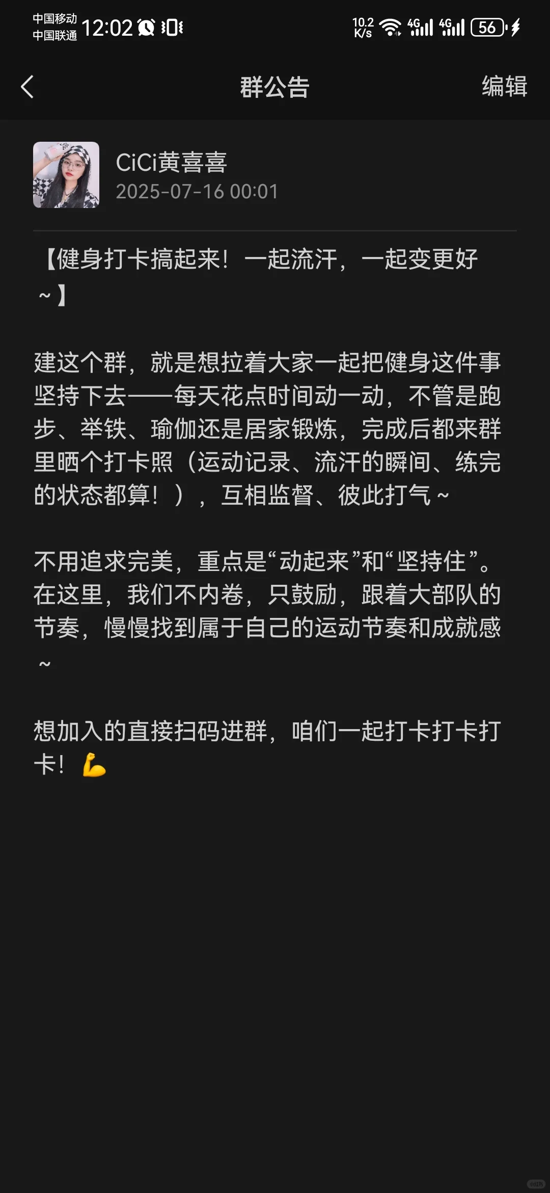 拉了个运动群氛围超好,打卡互卷(bushi)