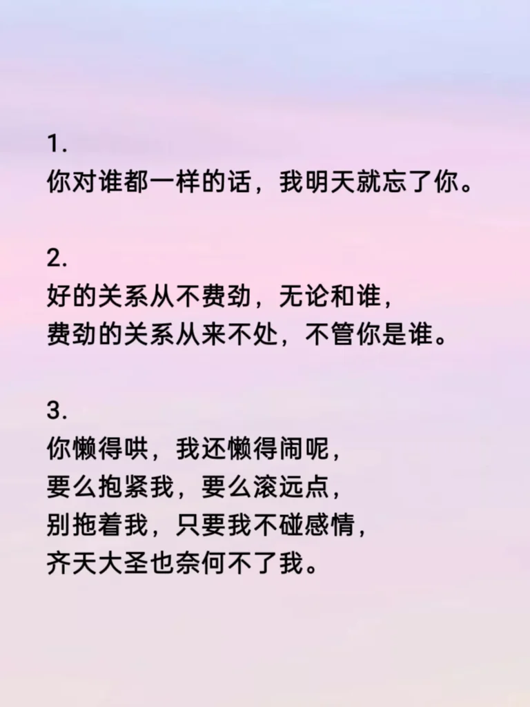 好的关系从不费劲,无论和谁,费劲的关系从来不处不管你是谁。