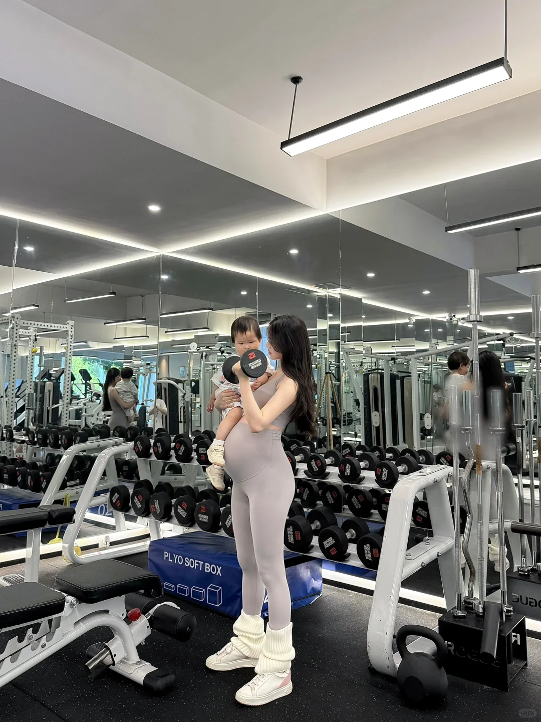 今天带着1岁2个月的女儿在健身工作室暴汗,很累但是也很爽,孕期也想做自己的女王,即便是二胎
