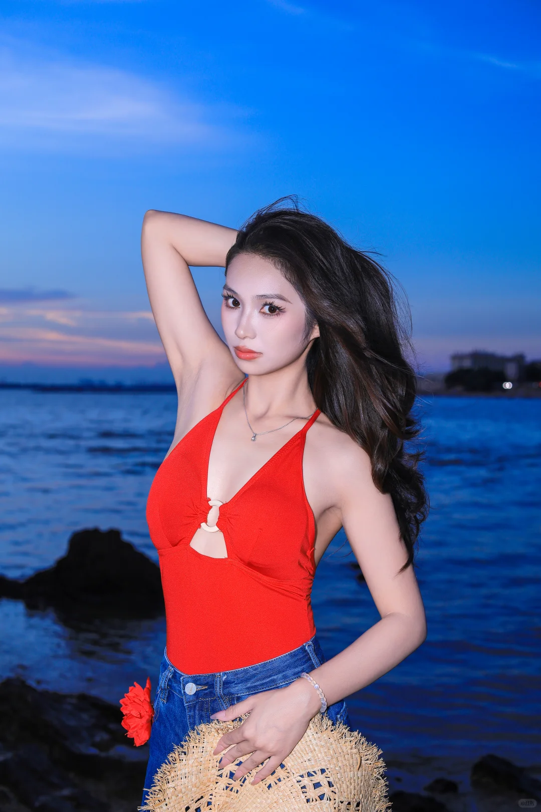 竟让我遇上这绝美蓝调和晚霞,比基尼拍照。