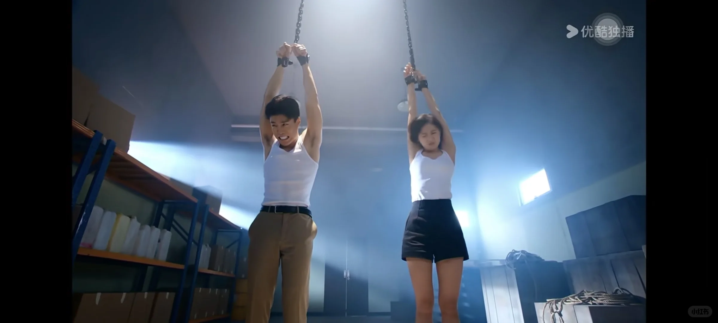 一个是邪教案,一个是靓妹案,不同凶手但是绑人方式却一样?先帮绑架对象换好背心,手往上绑在铁链上,戴着两个手环,高度控制在前脚掌刚着地的高度