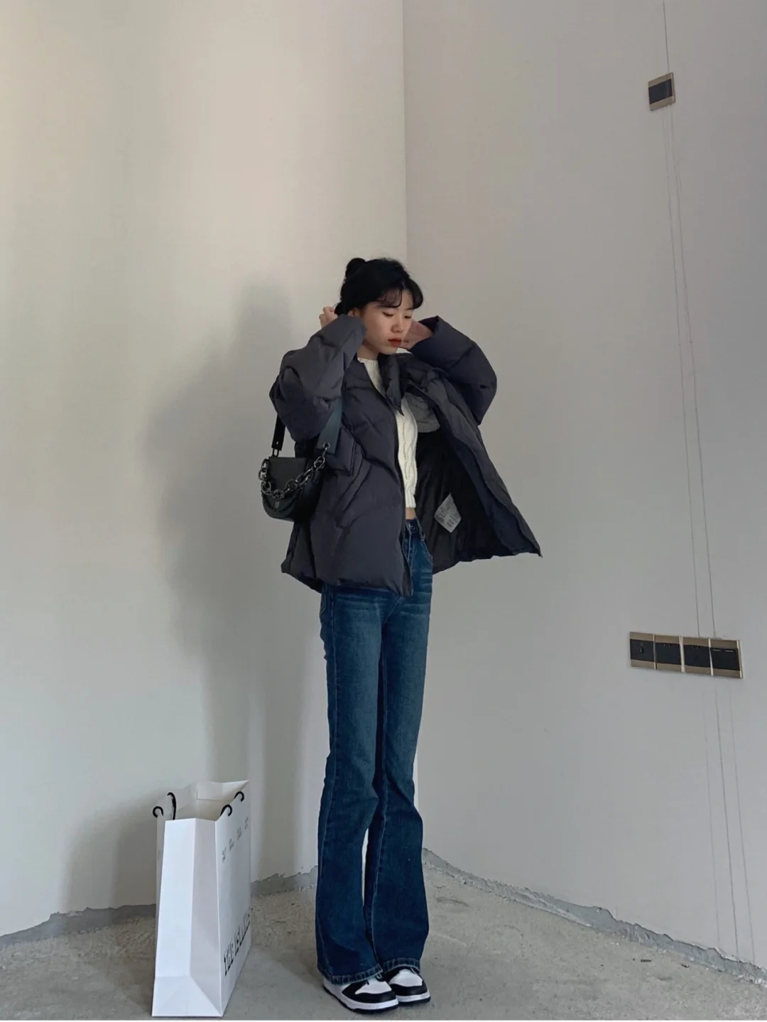 L|灰色系斜缝线边拉链棉服~版型可正有种自带小垫肩的感觉可厚实感 显头身比例可好