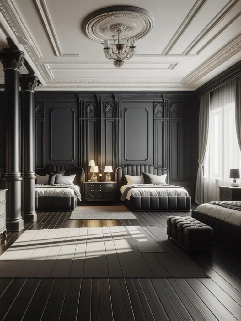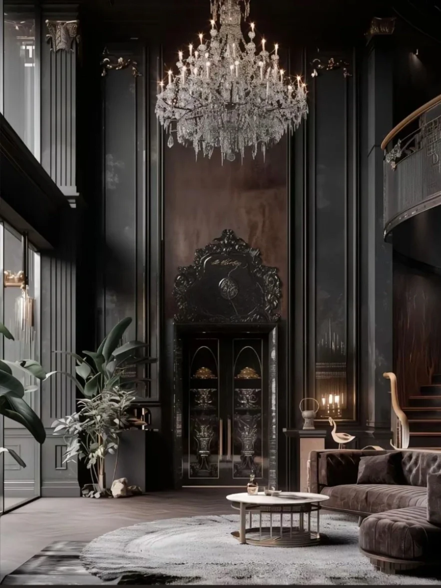 新巴洛克主义不再局限于传统金碧辉煌✨的刻板印象,2025年暗黑系新巴洛克以哥特美学为骨骼、极简主义为肌肤,通过哑光黑漆、金属冷光与宗教感线条,打造“吸血鬼城堡”般的戏剧张力。既保留巴洛克的曲线灵魂,又用现代材质消解浮夸感,实现奢华中透出克制,颓废里暗藏优雅的独特气质