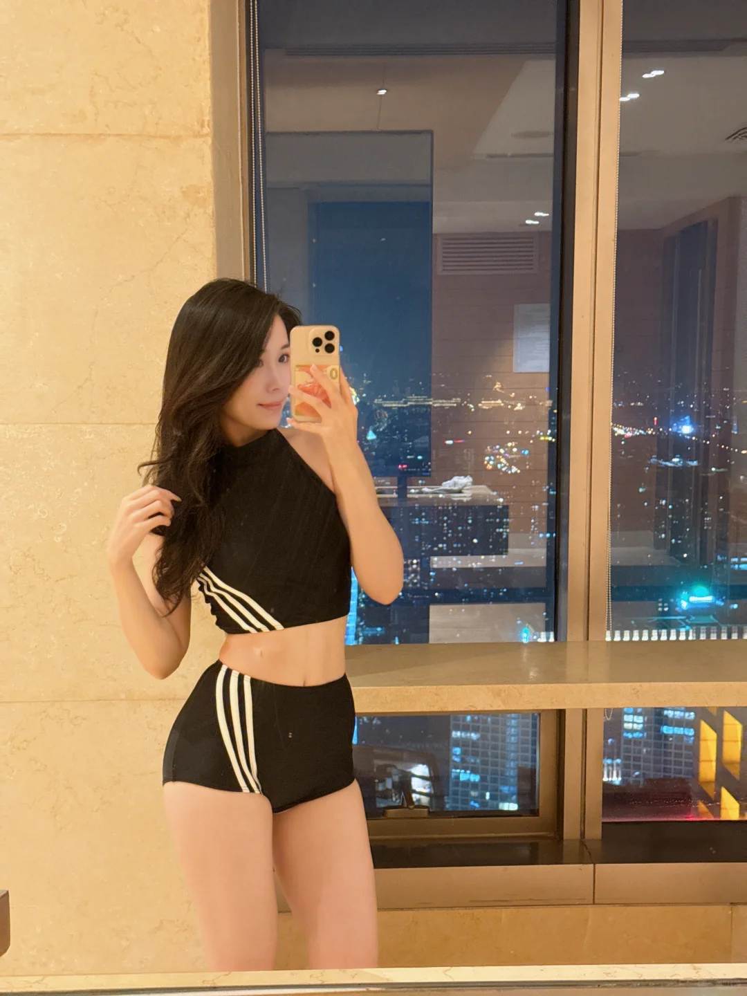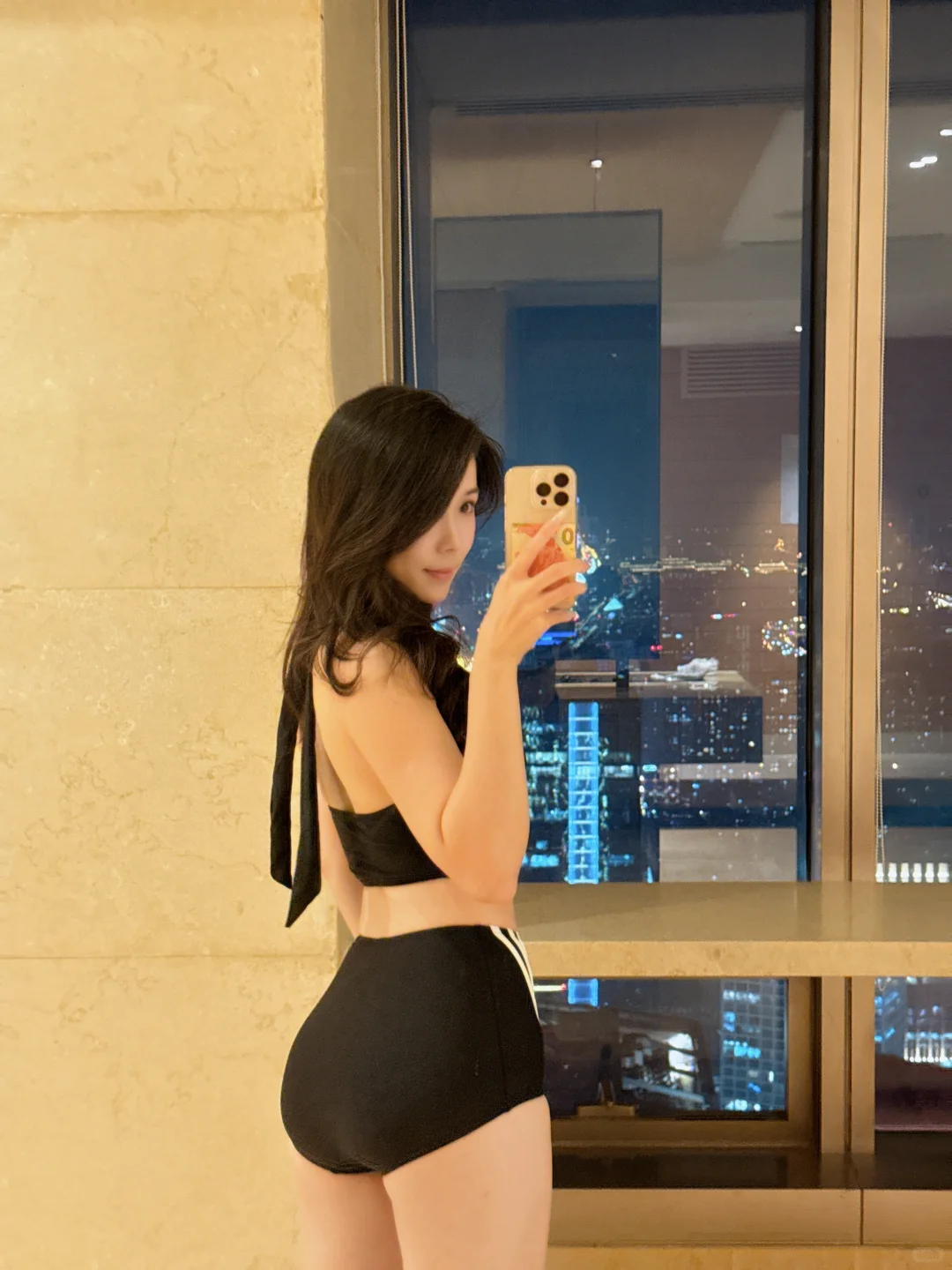 喜欢夜晚来游泳,人少环境好,新到的泳衣深得我心 好穿又性感,还是黑色最显瘦