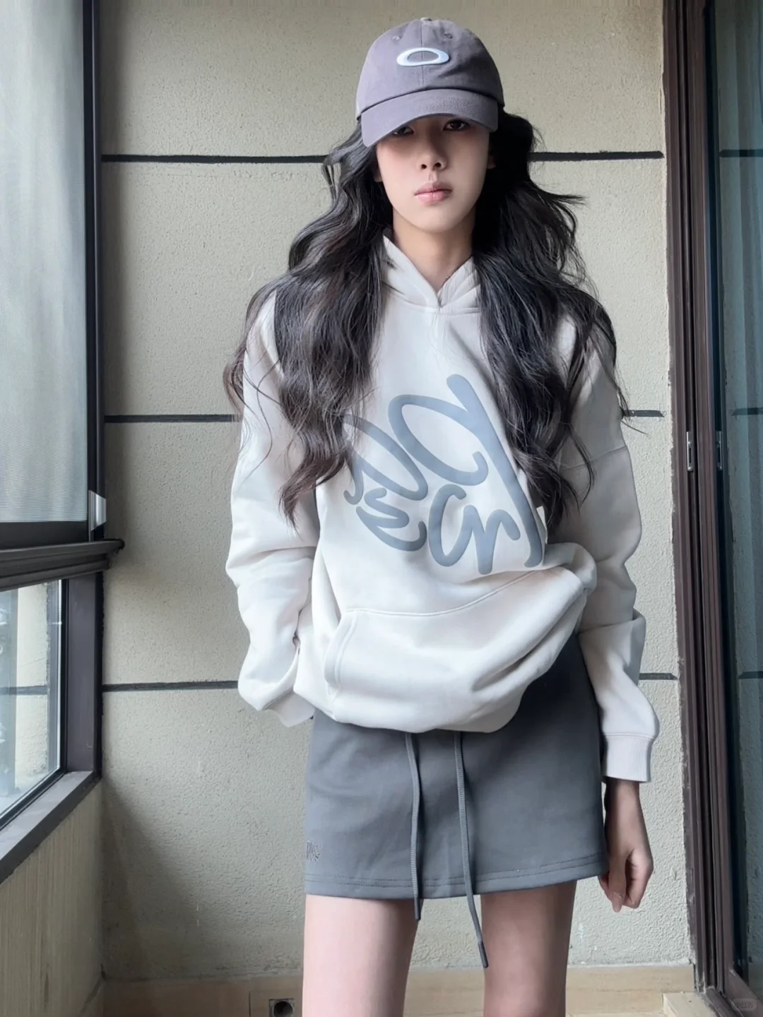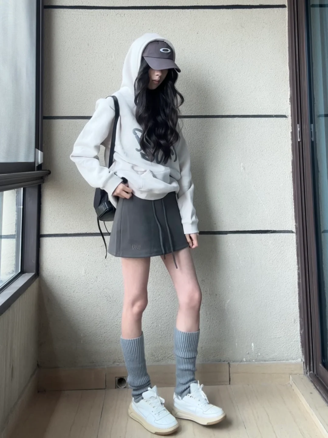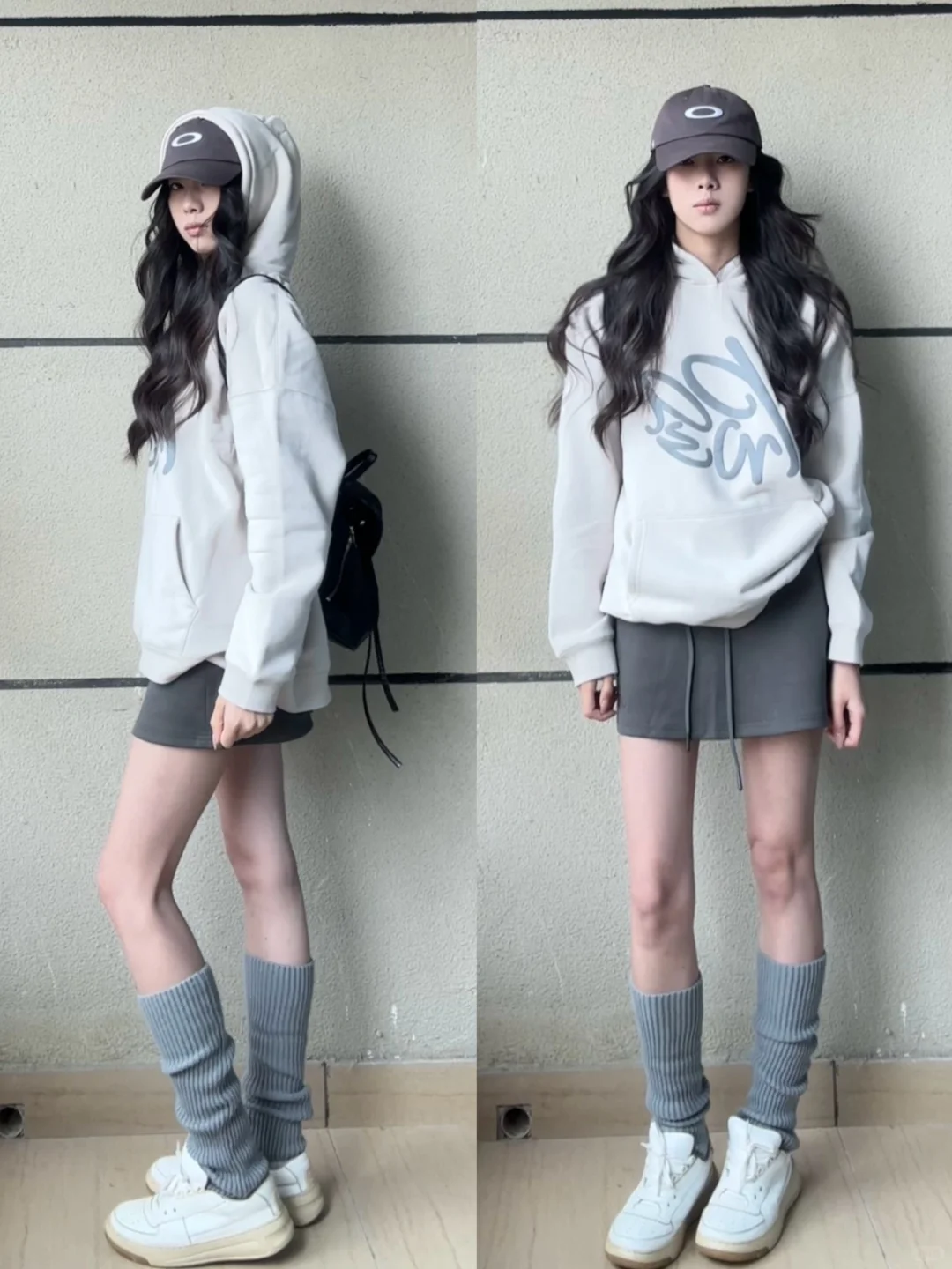 卫衣的颜色很特别!一身高级的灰,感觉这个色系完全就是低调又好看,超适合女大学生的早八穿搭