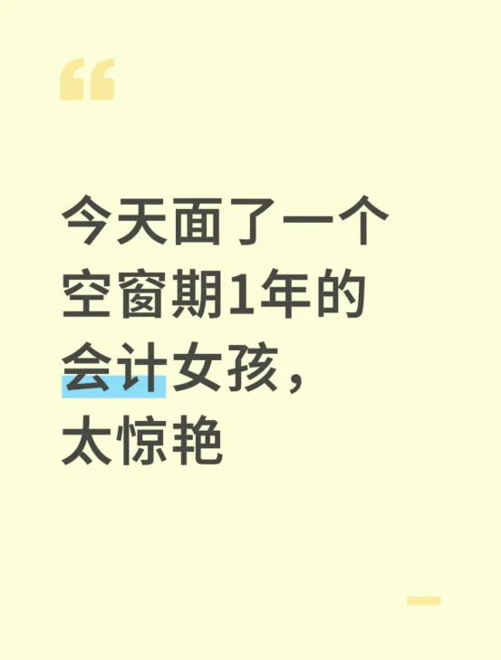 今天面了一个空窗期1年的会计女孩,太惊艳