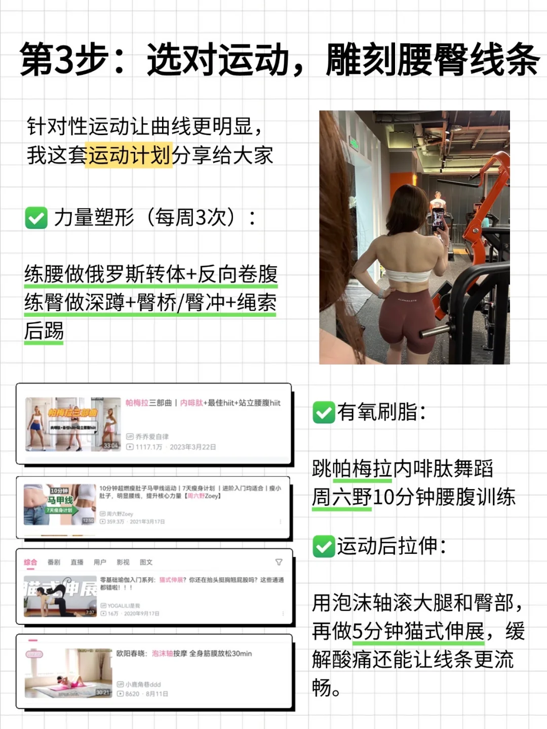 哪个健身女生不想拥有细腰蜜桃翘臀?记得穿裙子没曲线,看着别人的S型身材超羡慕。