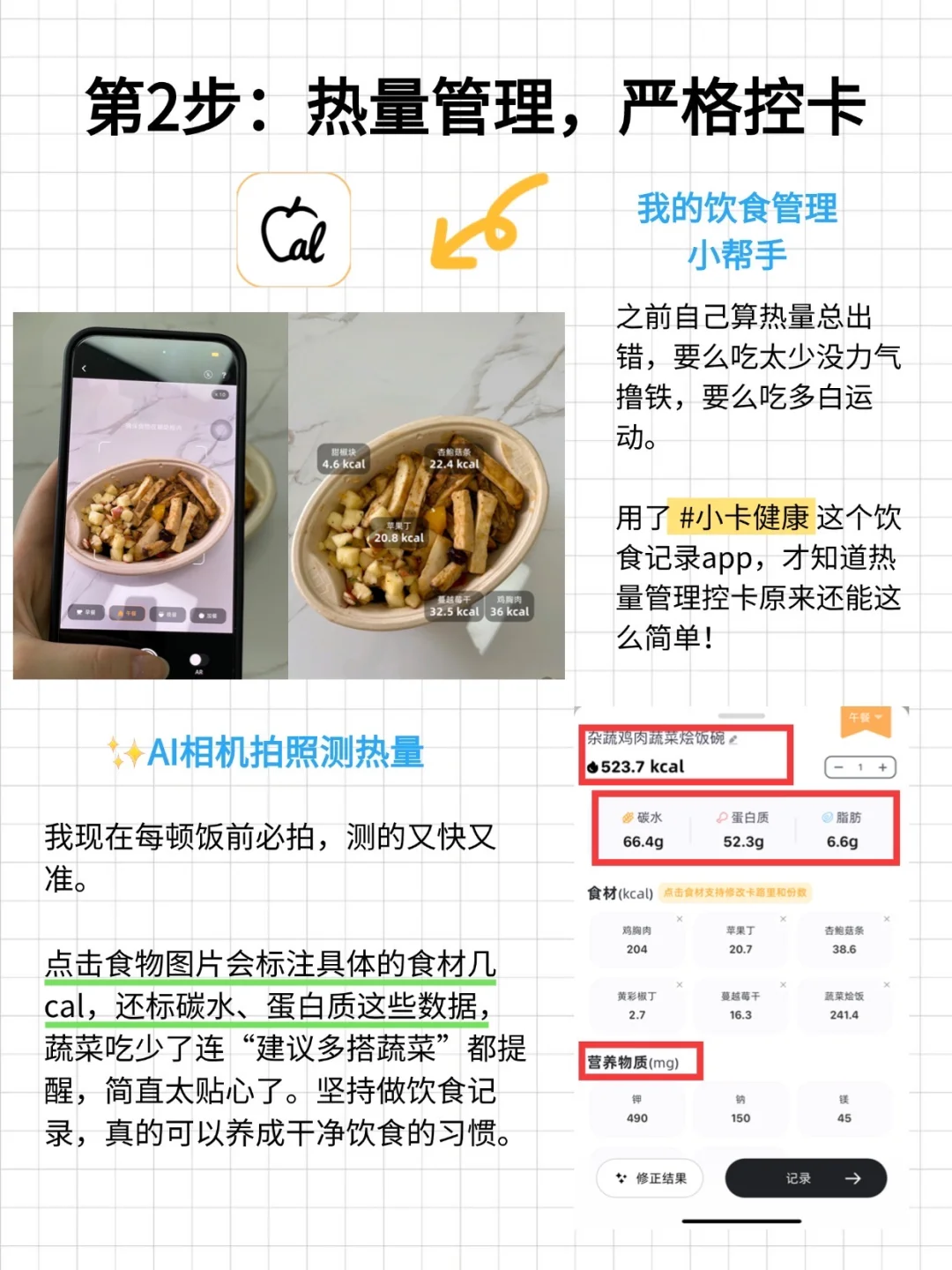 之前自己算热量总出错,要么吃太少没力气撸铁,要么吃多白运动,用了#小卡健康这个饮食记录app,才知道热量管理控卡原来还能这么简单!