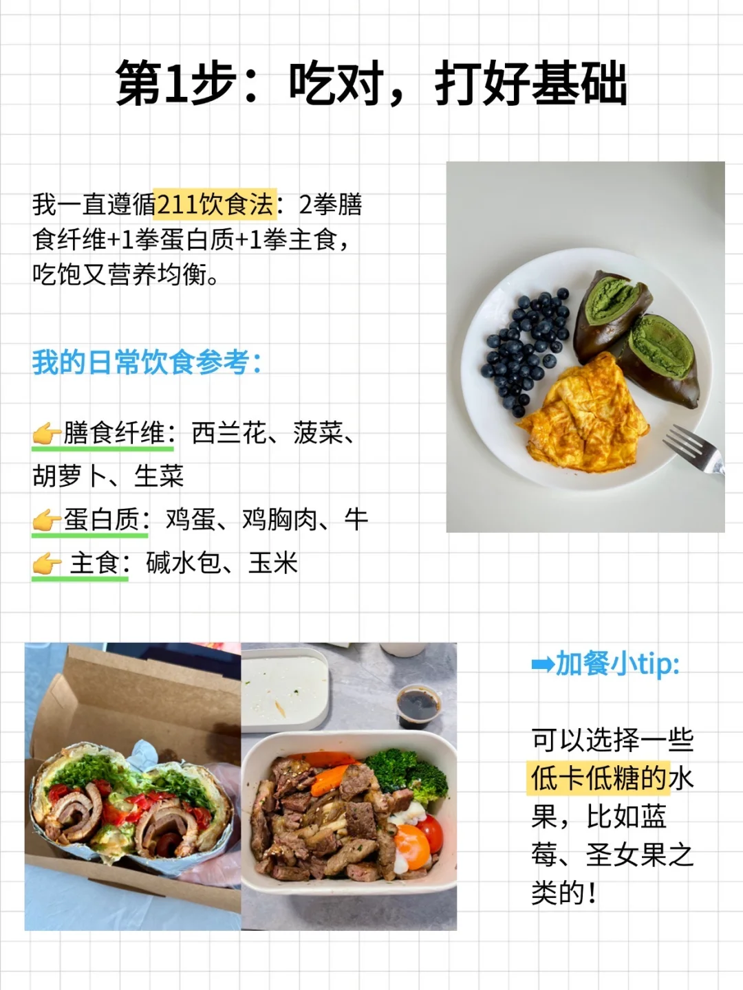饮食方面,我一直遵循211饮食法:2拳膳食纤维+1拳蛋白质+1拳主食,吃饱又营养均衡。