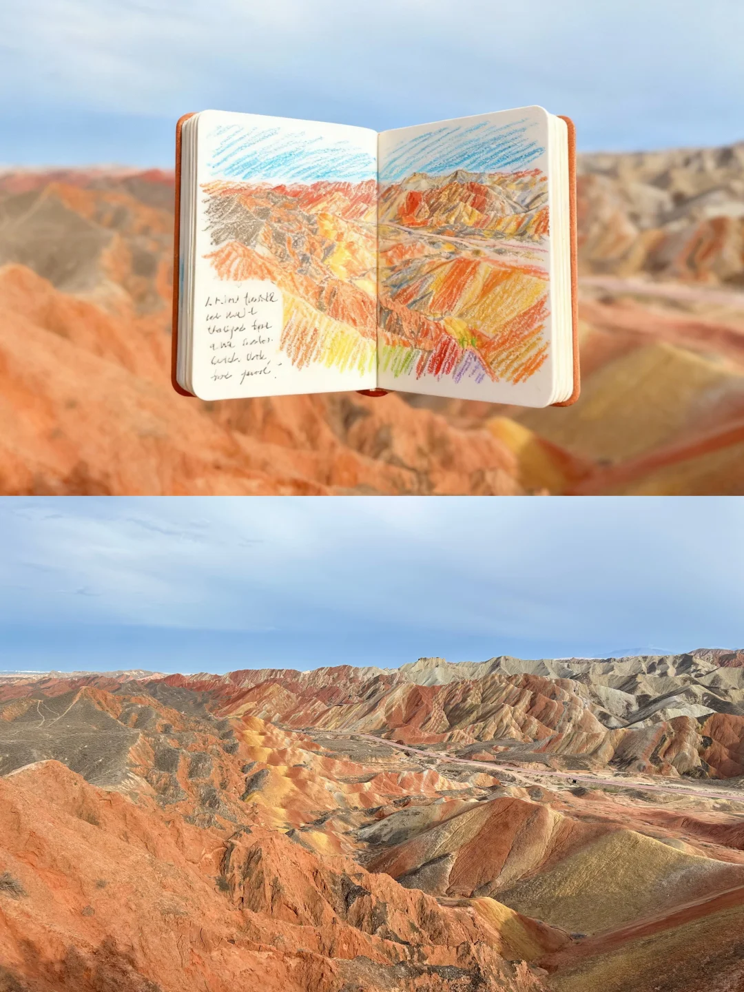 AI直接把我的旅行照变成了一张张充满氛围感的绘本海报。