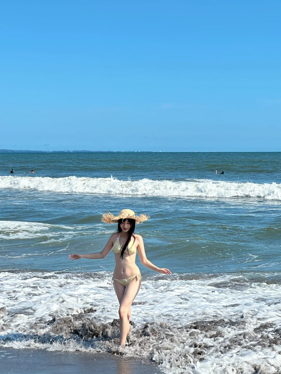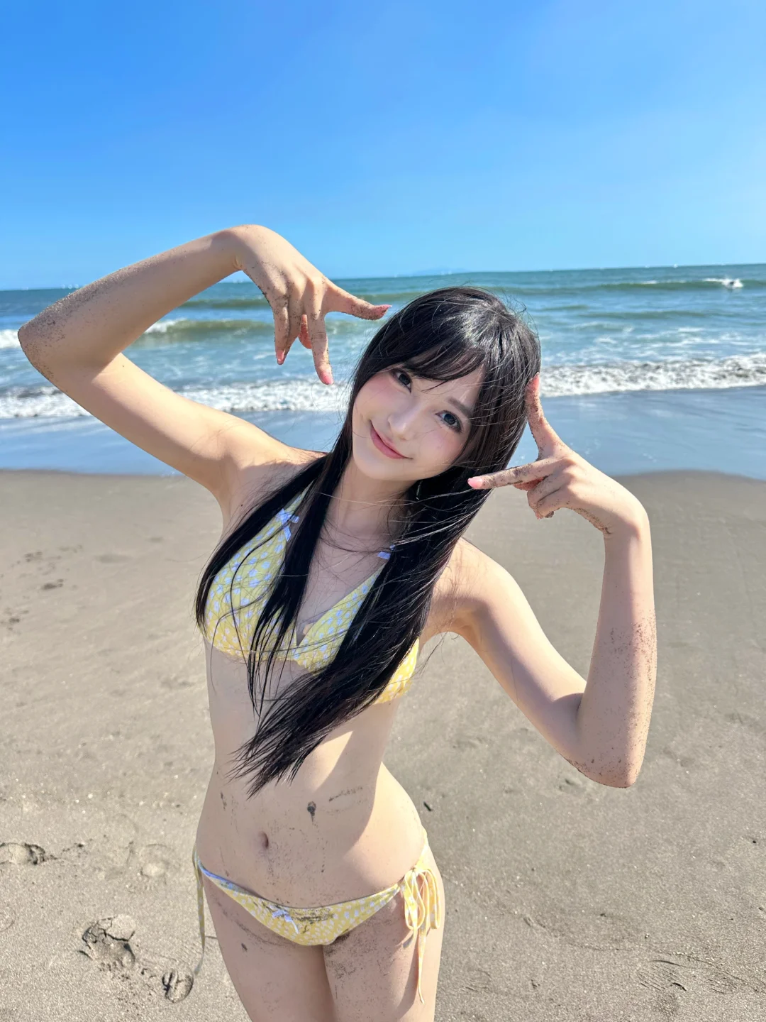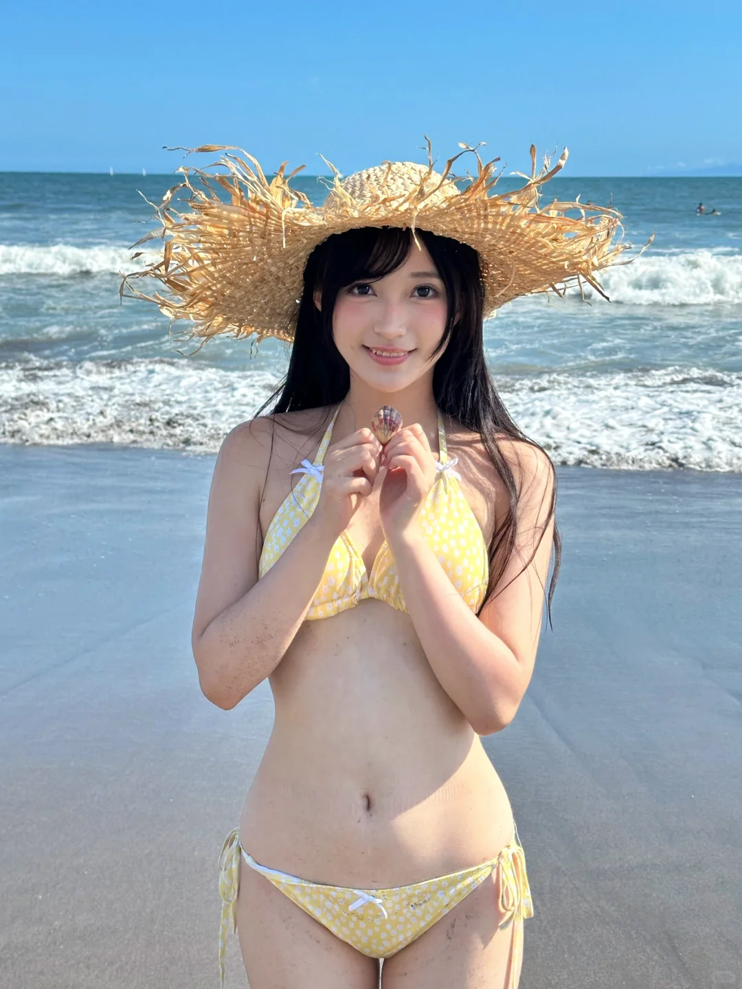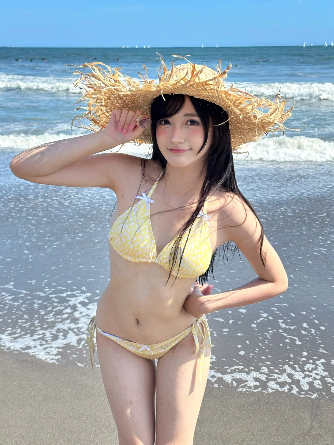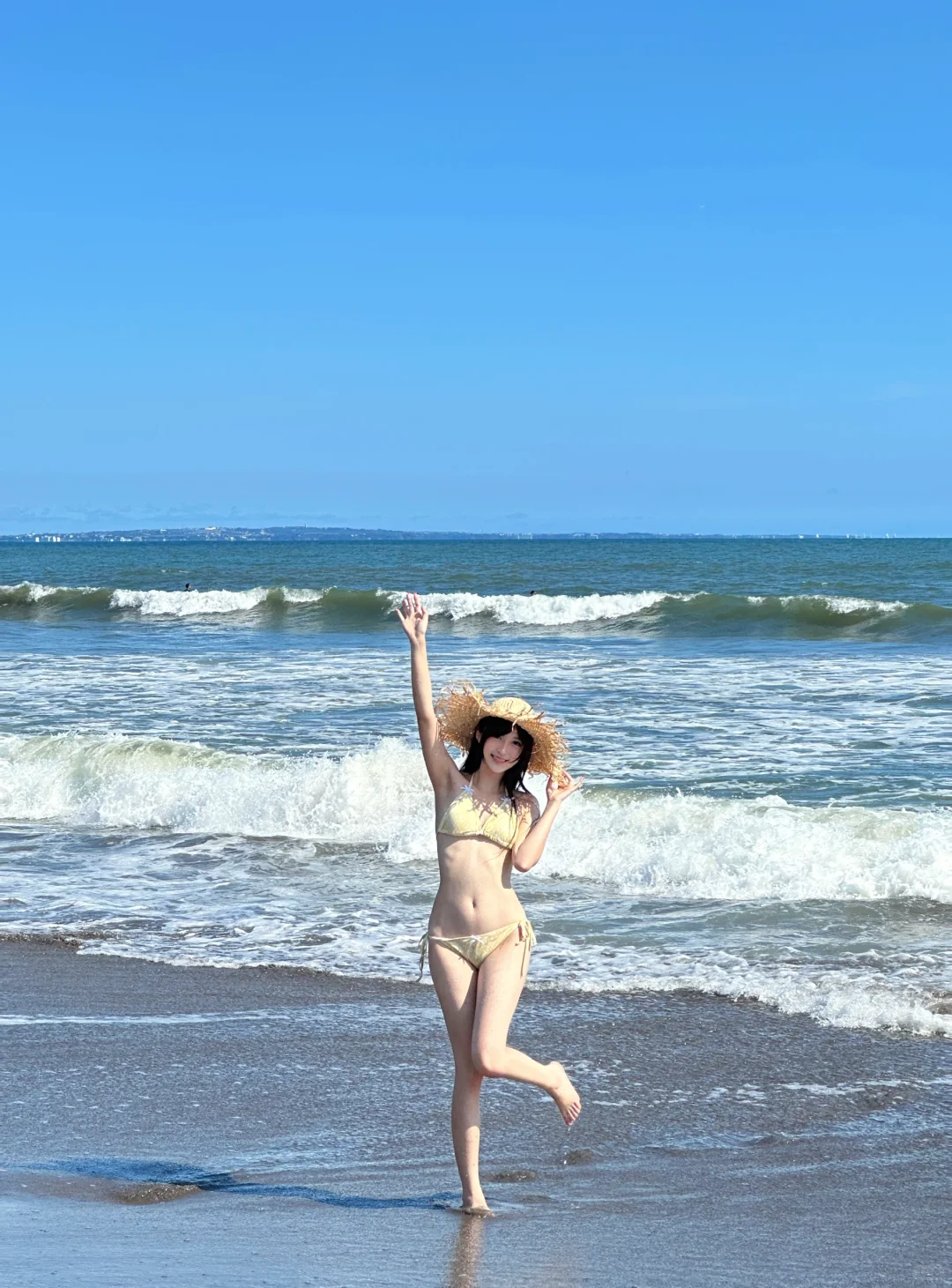 手機隨拍花絮直出!鎌倉的海風吹亂髮絲🌊,澄澈的藍撞上明黃泳衣,像打翻夏日調色盤。浪花追著腳踝跑,陽光在肩頭跳躍,是海邊不設限的快樂時光~