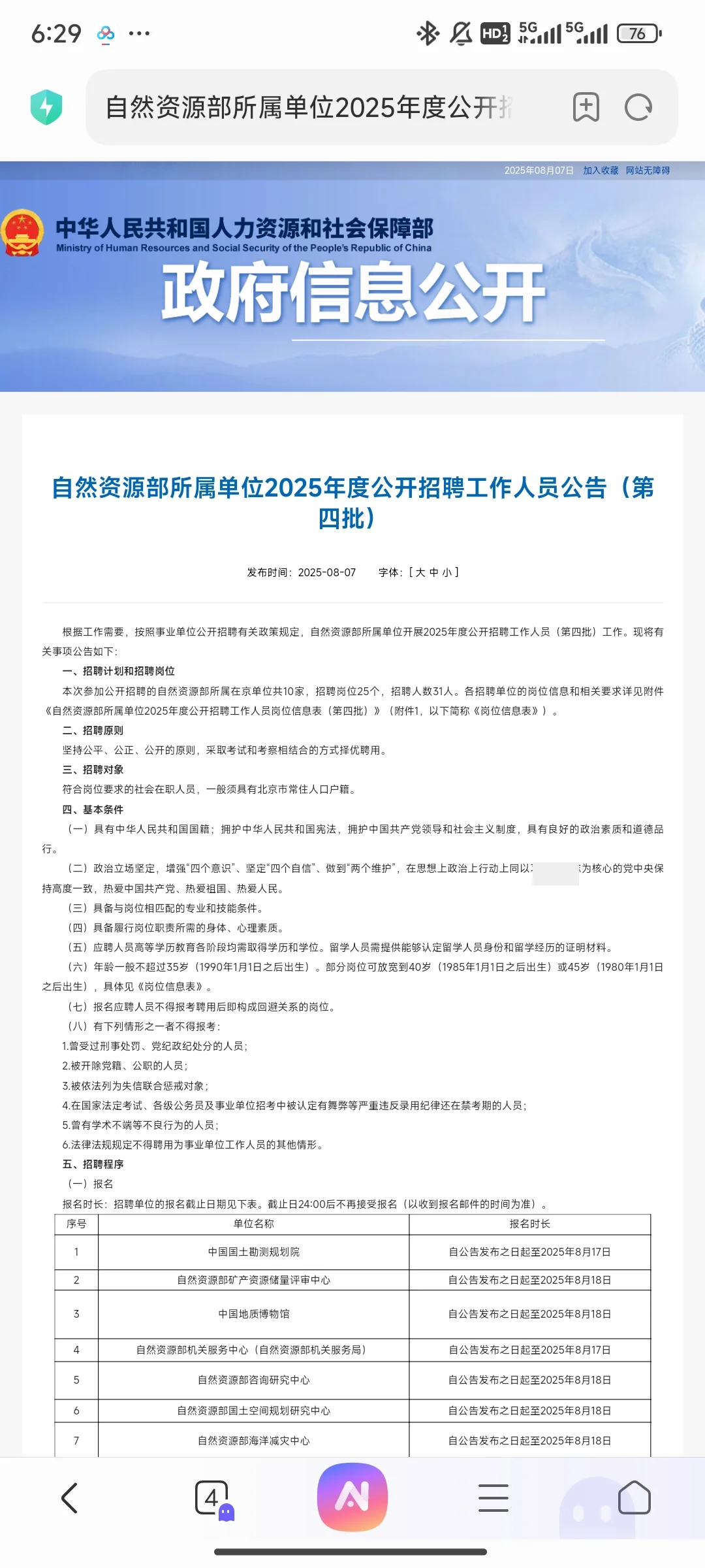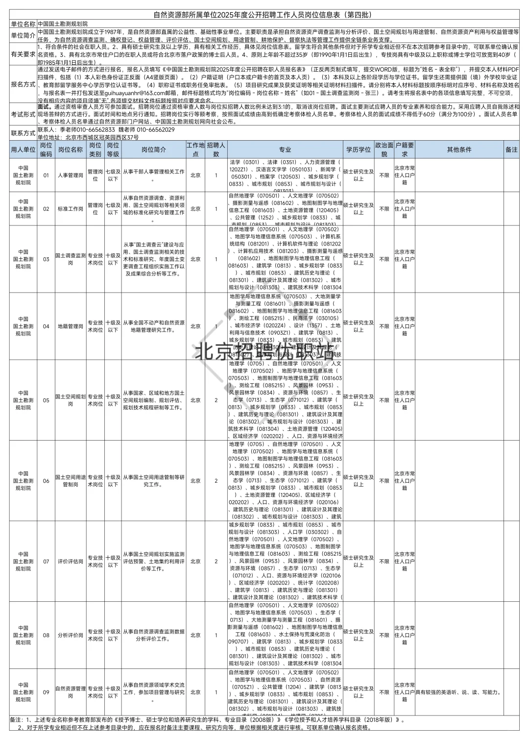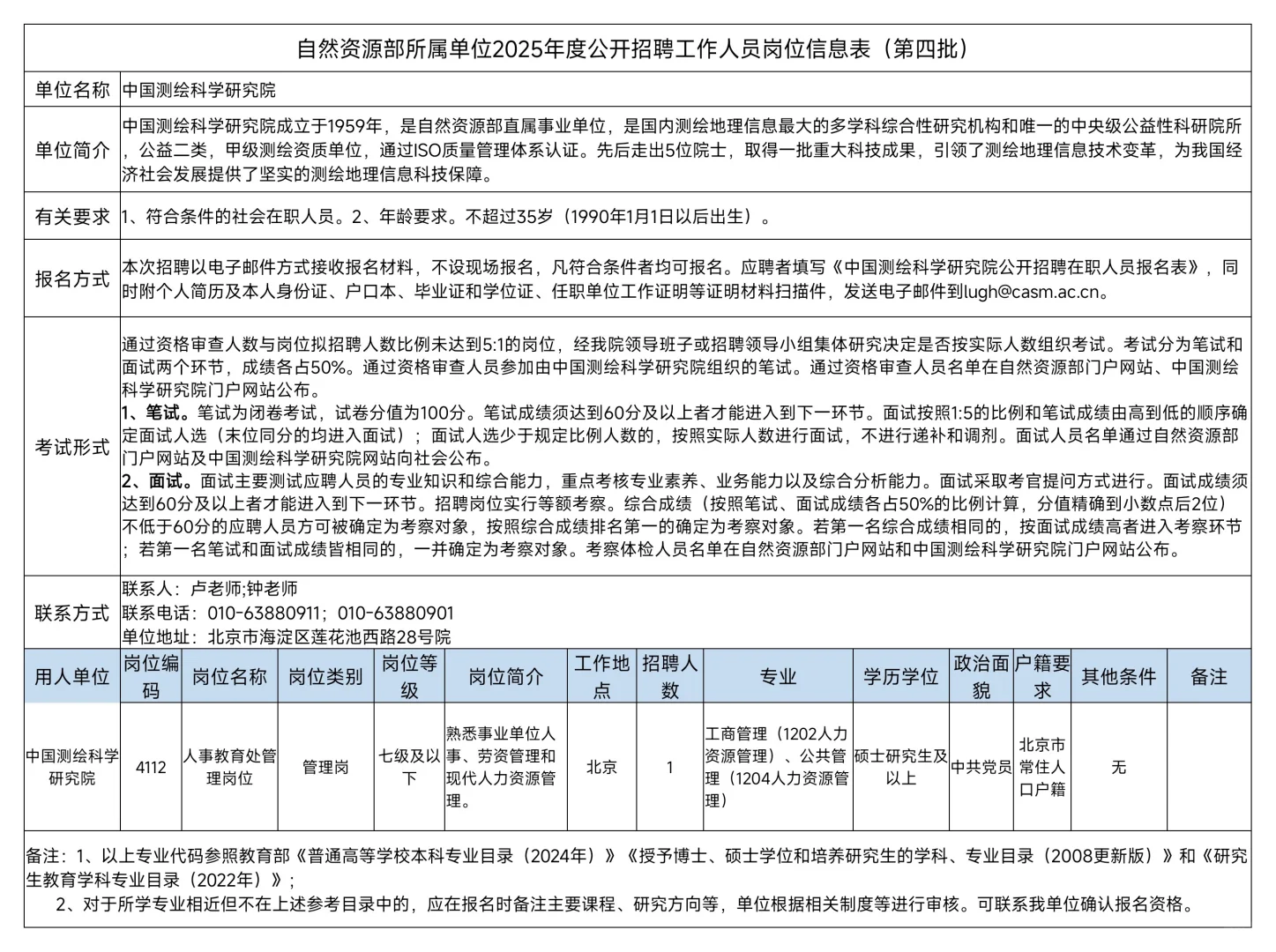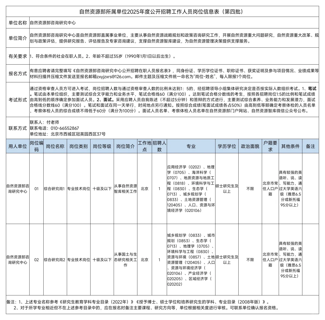 自然资源部所属单位2025年度公开招聘工作人员公告(第四批)