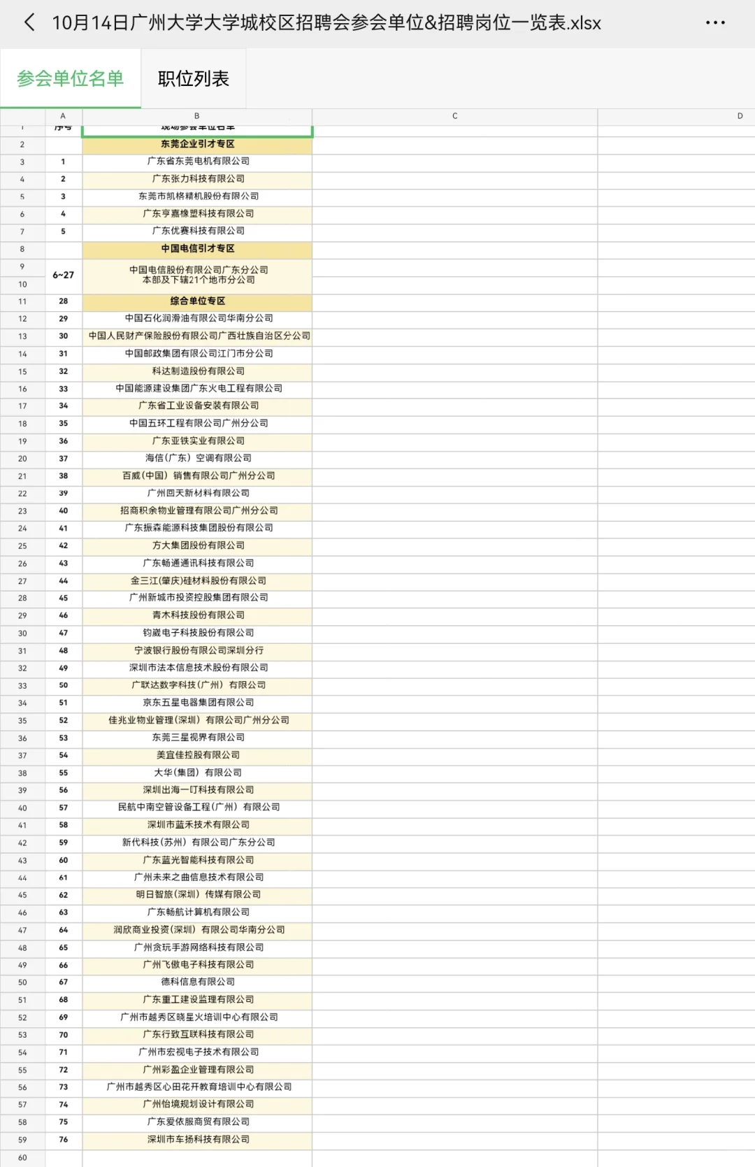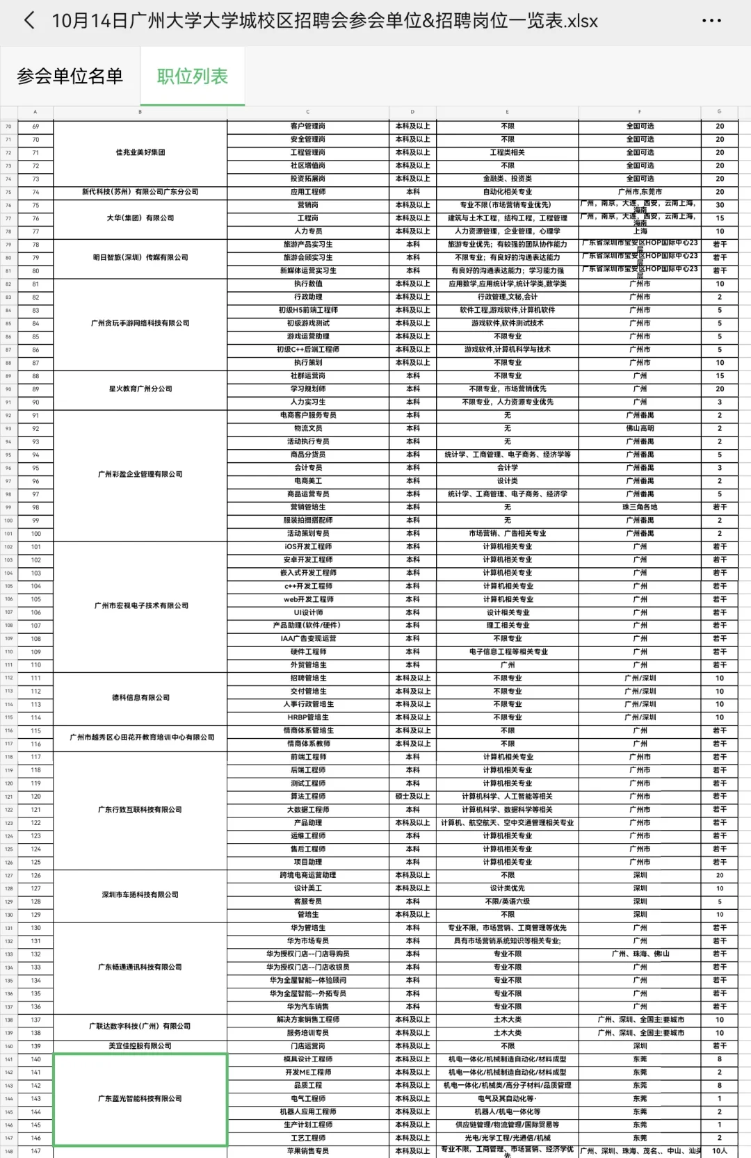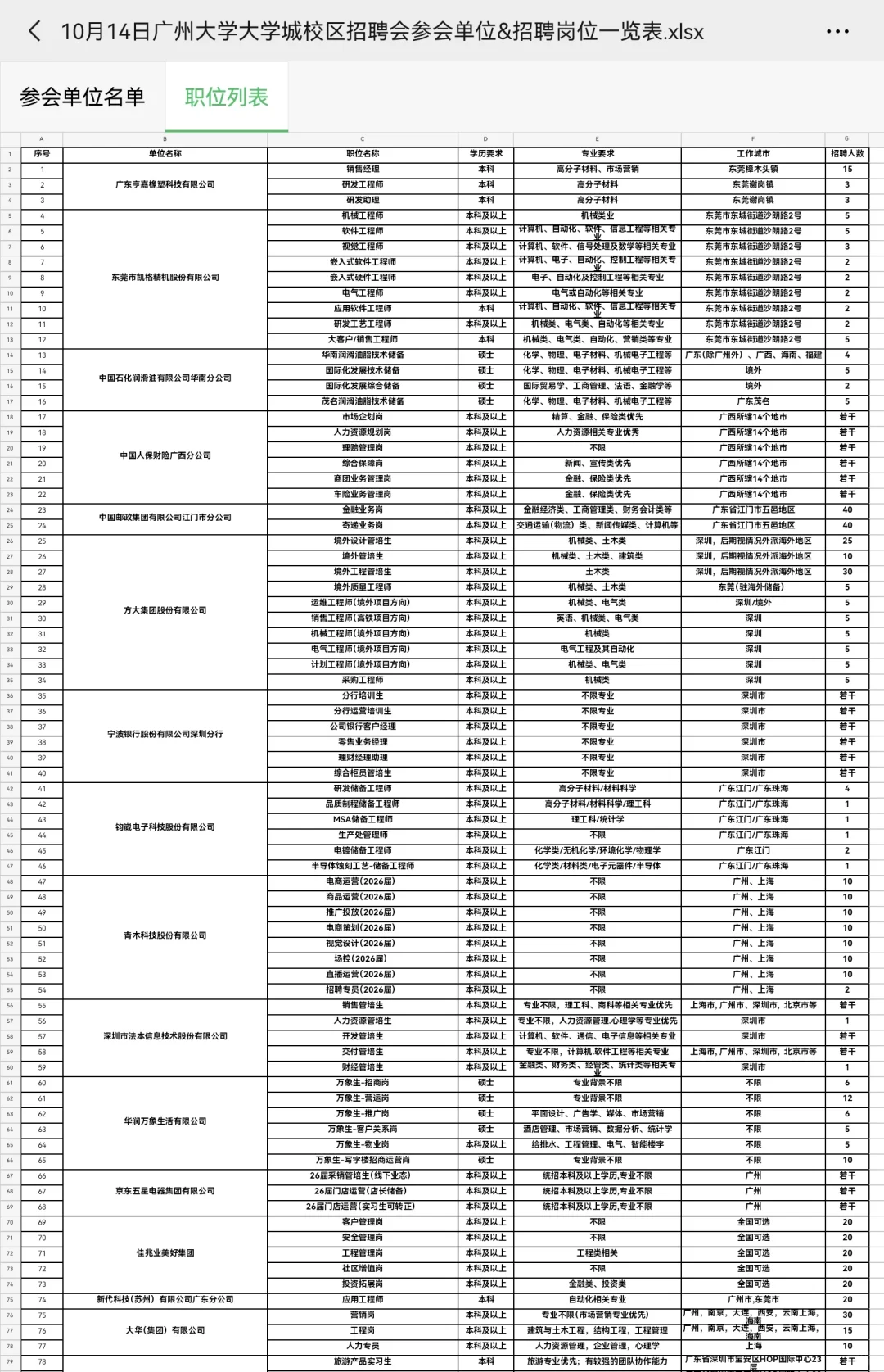 十月十四号广州大学线下招聘会岗位
