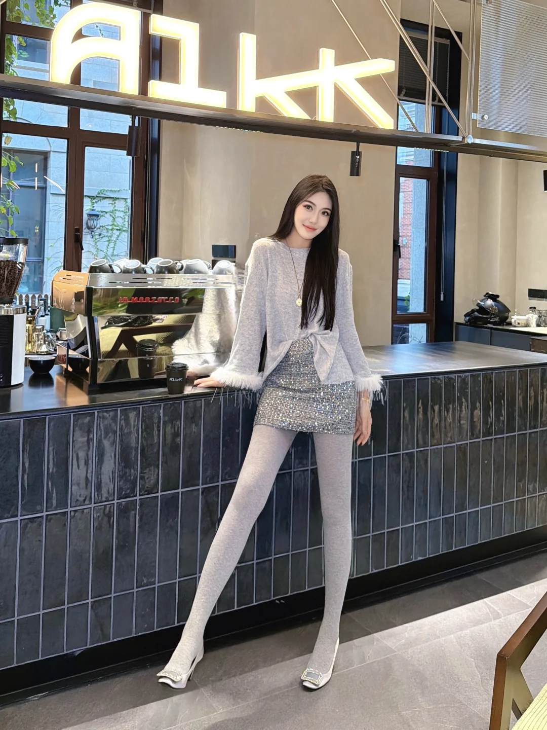 🌊蓝灰色窄版阔腿牛仔裤女2025秋季新款