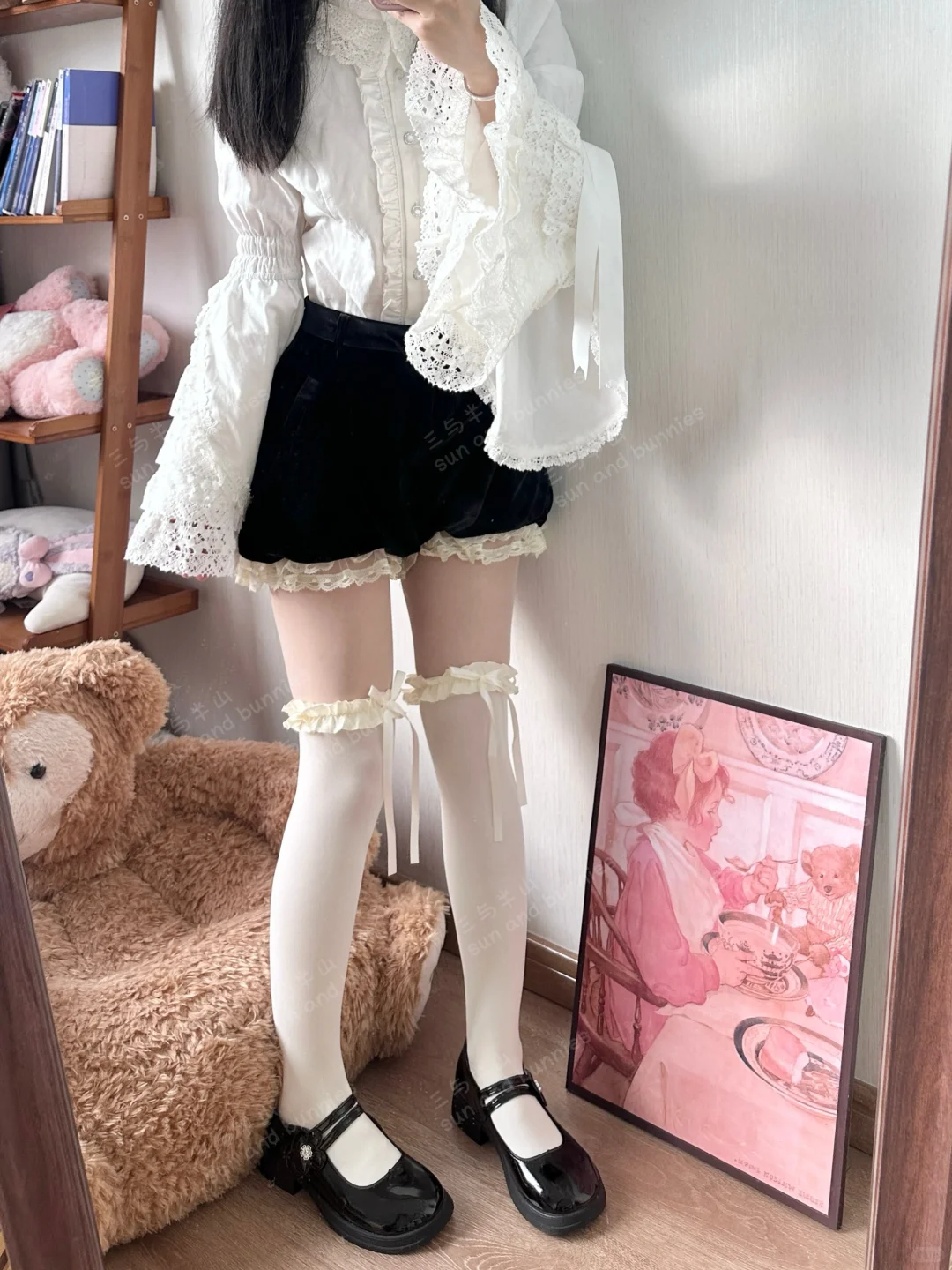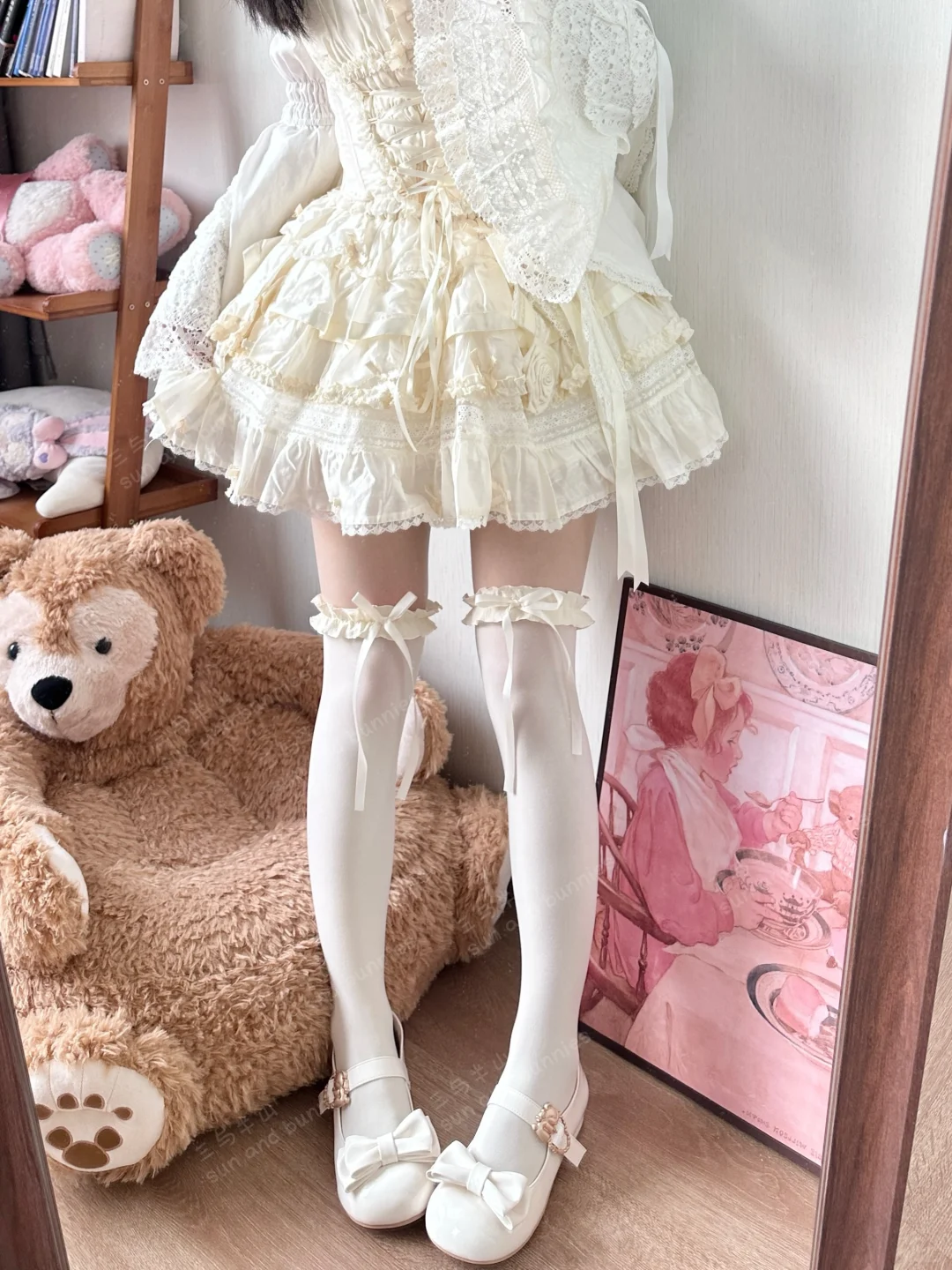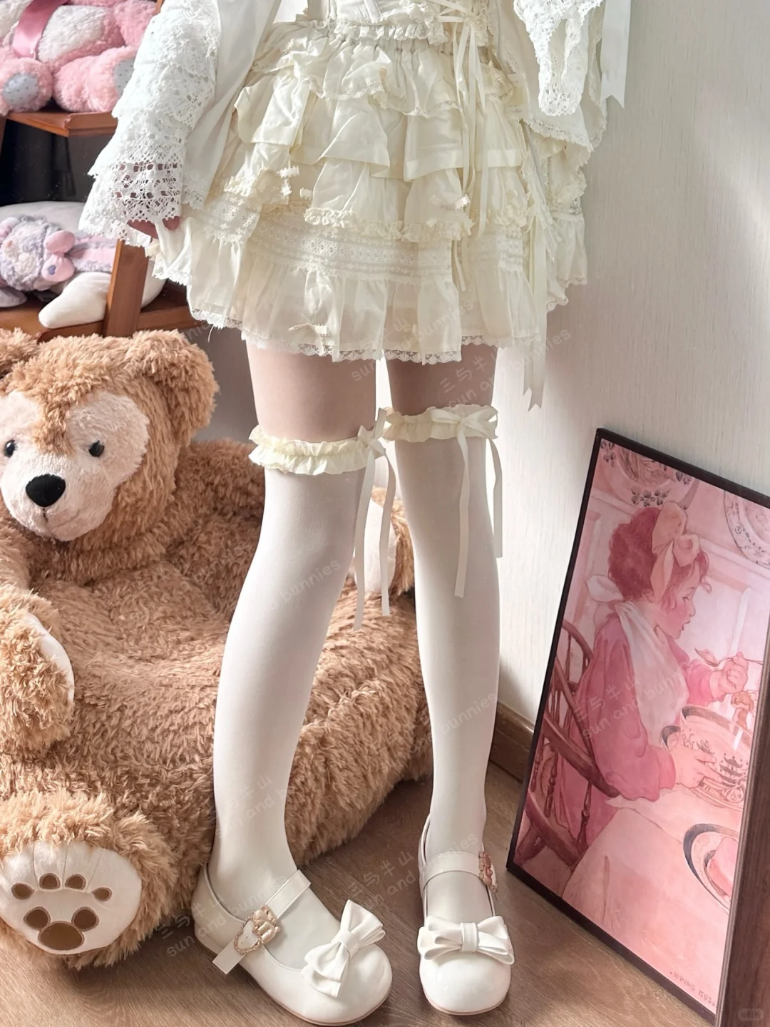 谁懂啊,奶白蝴蝶结过膝袜真的太温柔了!