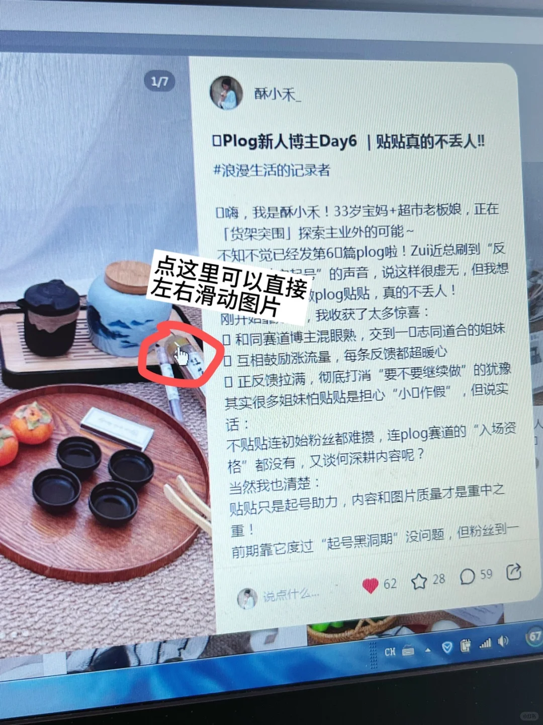 刷图文笔记时,鼠标左右滑就能切换图片,觉得图小?点一下直接放大看细节,再也不用凑着手机屏看啦~