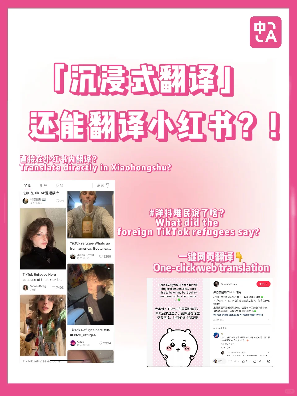 一觉醒来小红书主页全英文?!大量TikTok refugee涌入小红书,如何丝滑看懂外国友人发的英文贴?用「沉浸式翻译」2步就可实现!