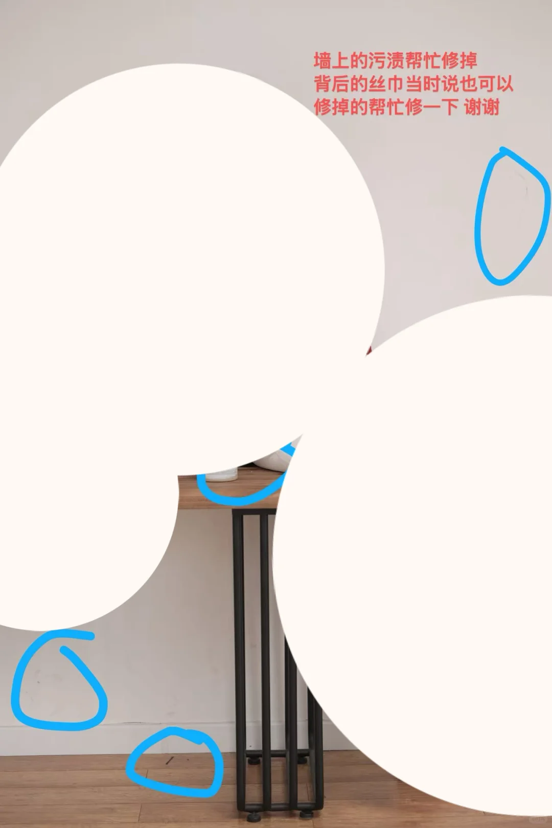再说说修的图,墙上的脏都不给修,大小眼也不调,还得我一张一张圈出来,拿到手我还得自己再美图秀秀重返工,照这样我都能干修图师了