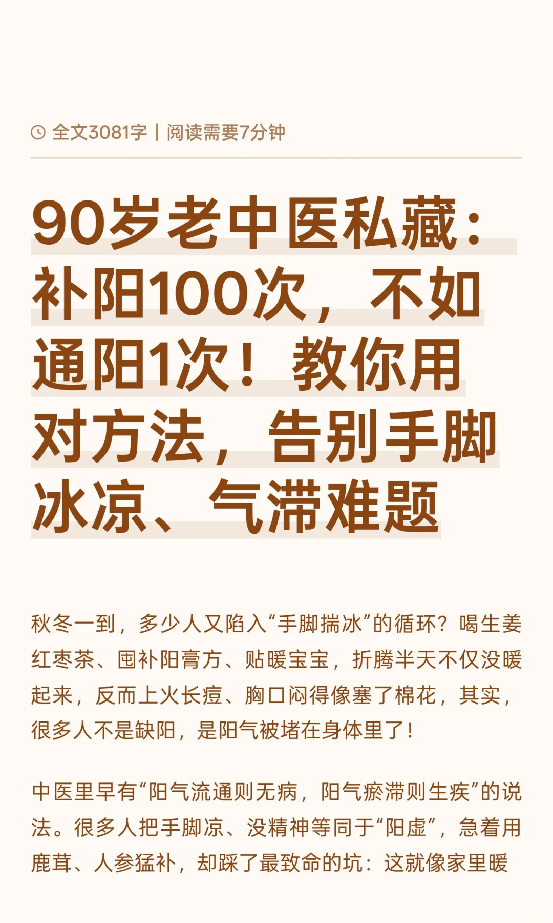 90岁老中医私藏:补阳100次,不如通阳1次!