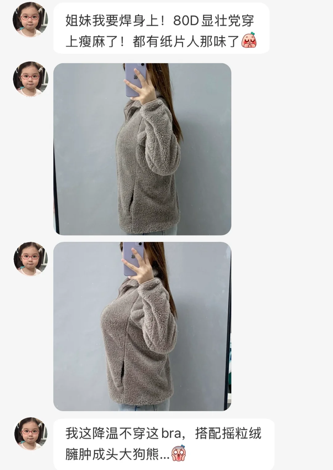 它这个莫代尔的面料,穿着可舒服了~洗好几次也没变形,几十块钱就能轻松实现大胸显小,穿衣显瘦,墙裂建议姐妹们去414,这个秋冬直接嘎嘎乱鲨!