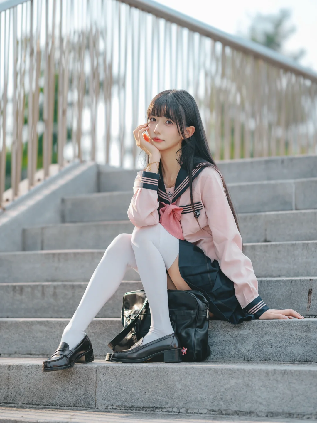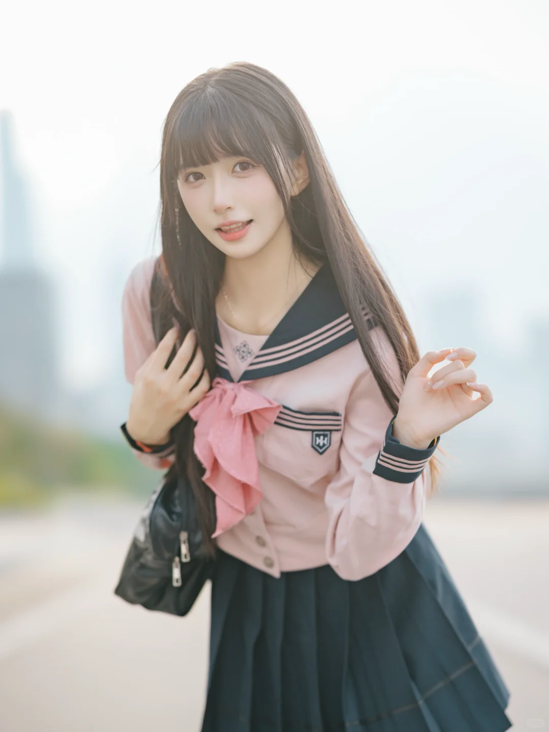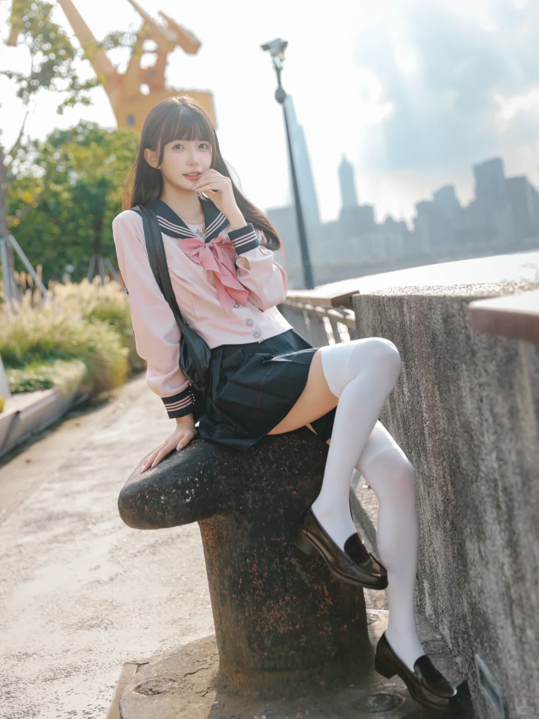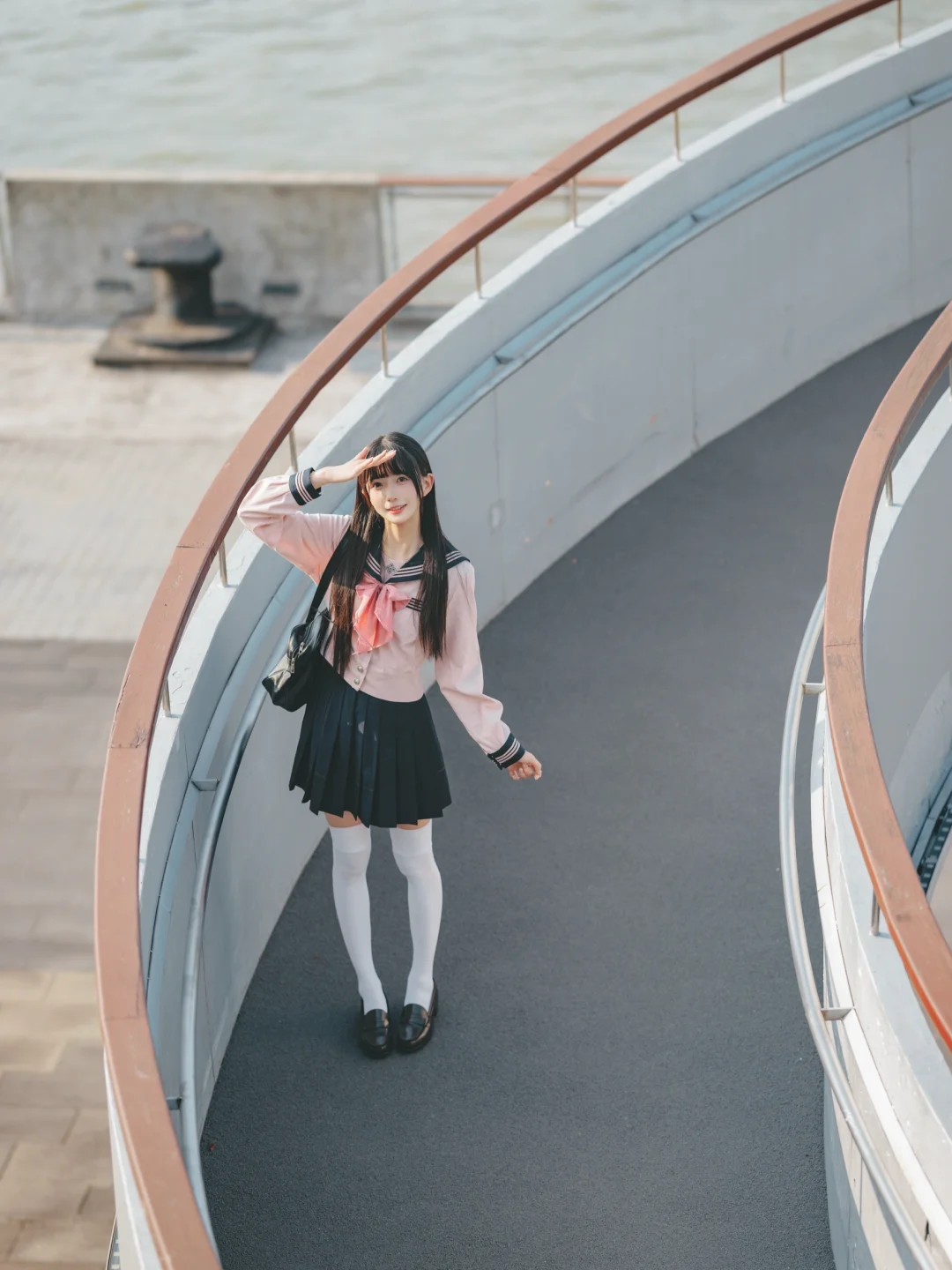 室外人像|在江边拍到了粉红色jk制服的vv!