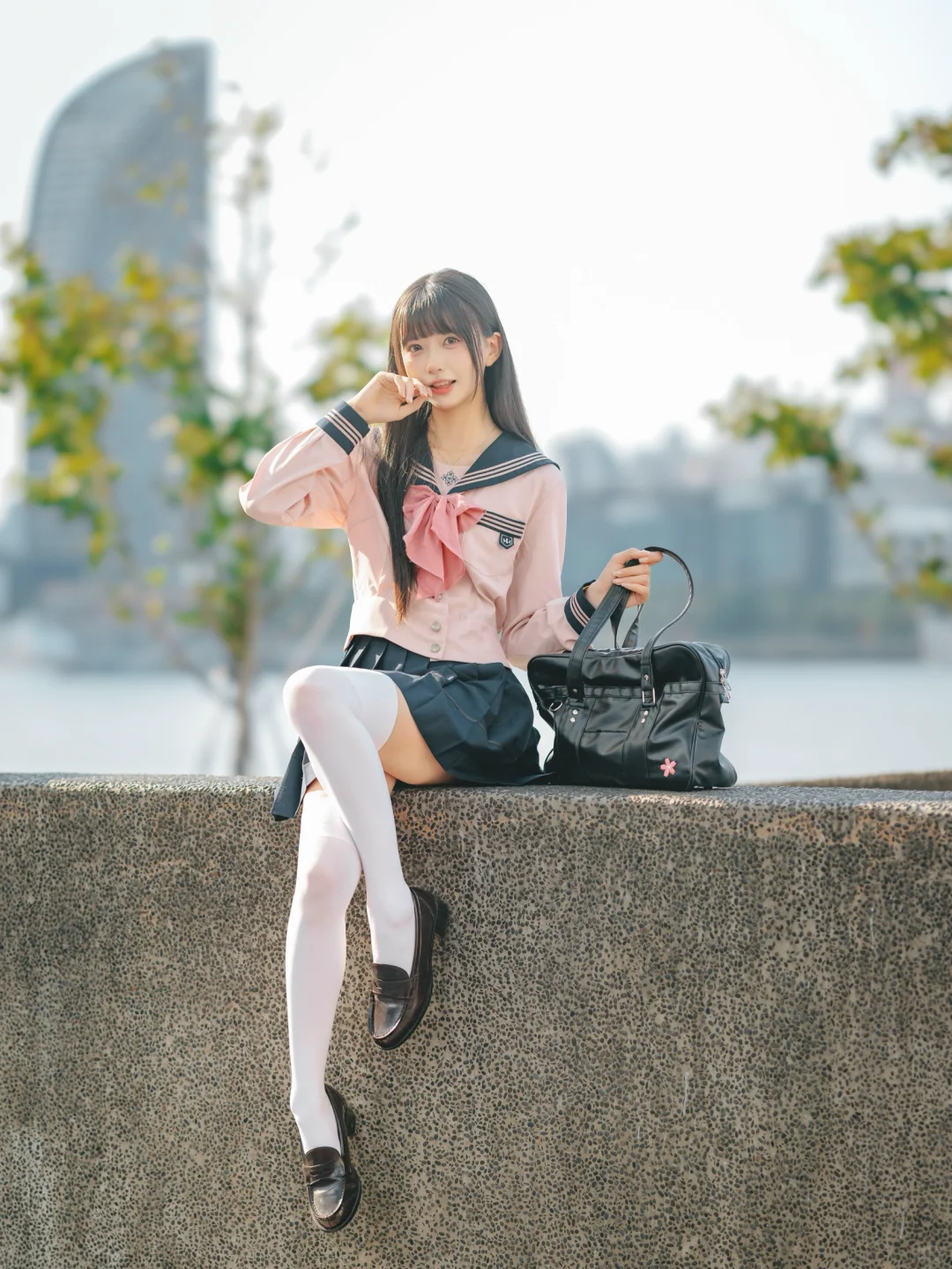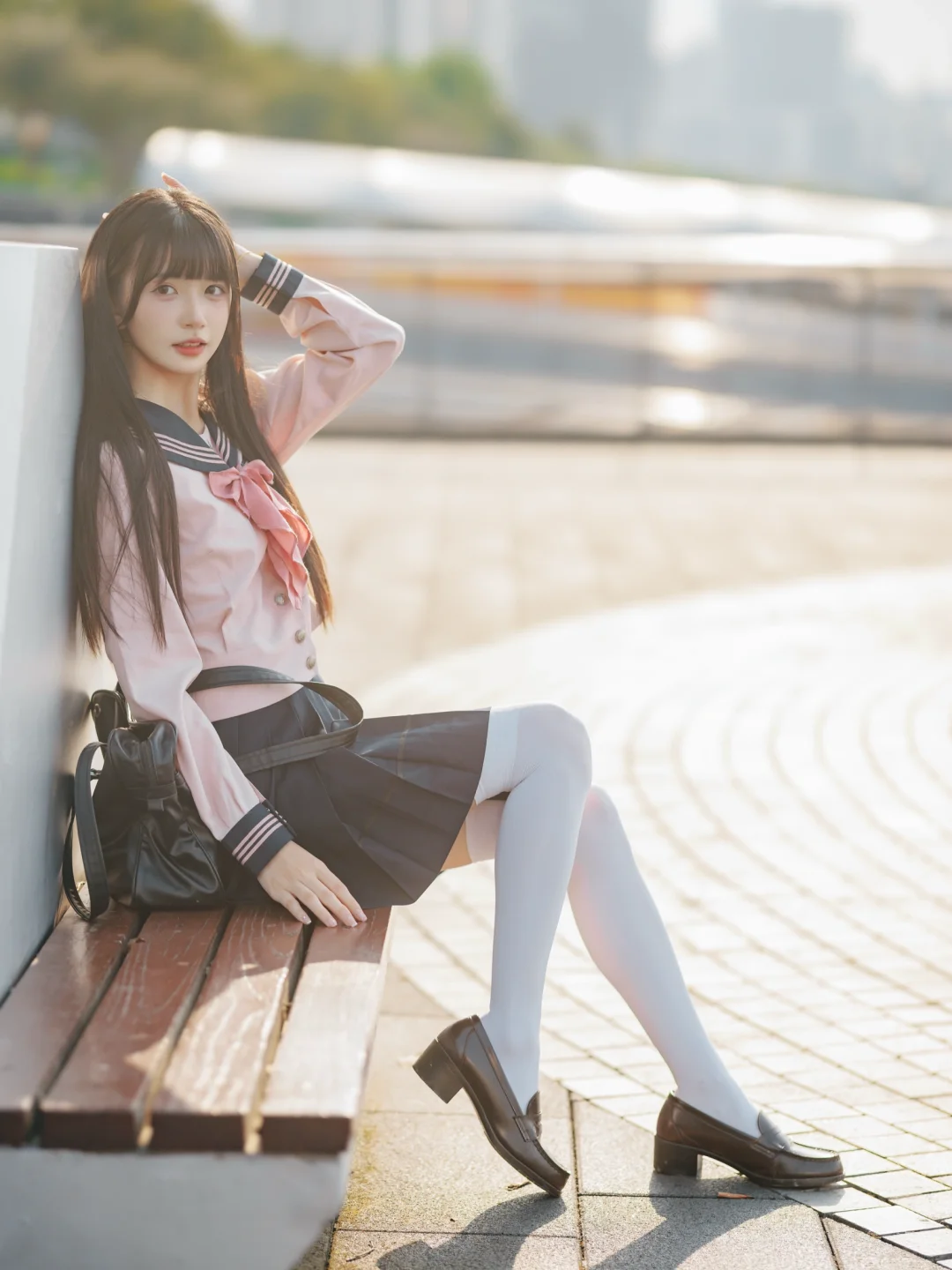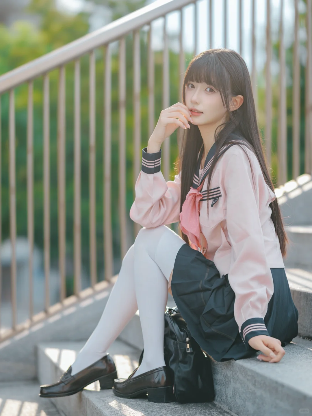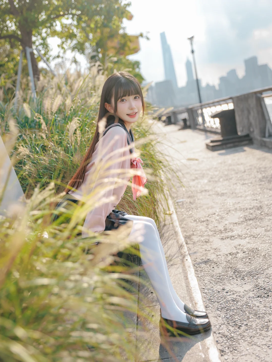 室外人像|在江边拍到了粉红色jk制服的vv!