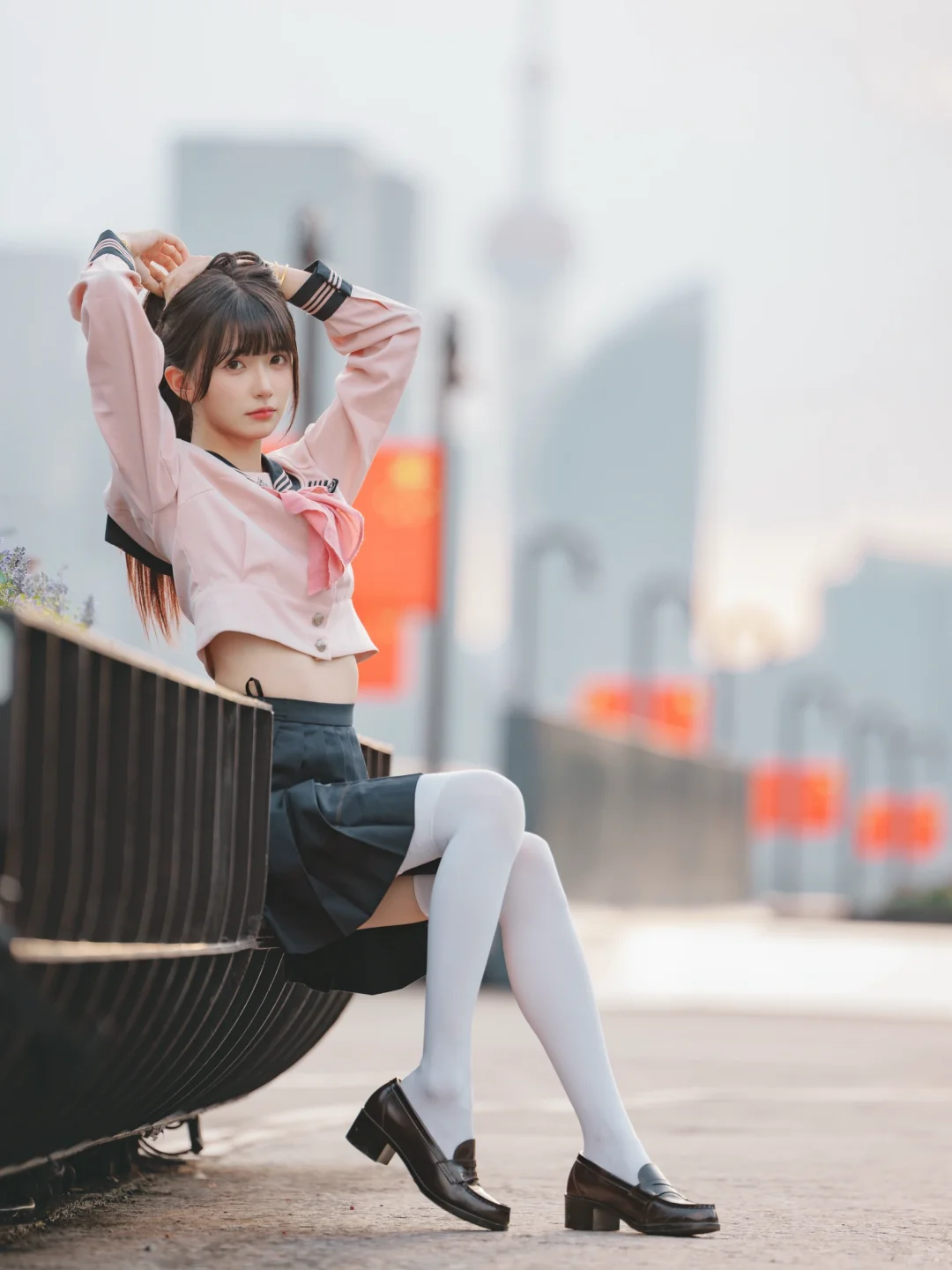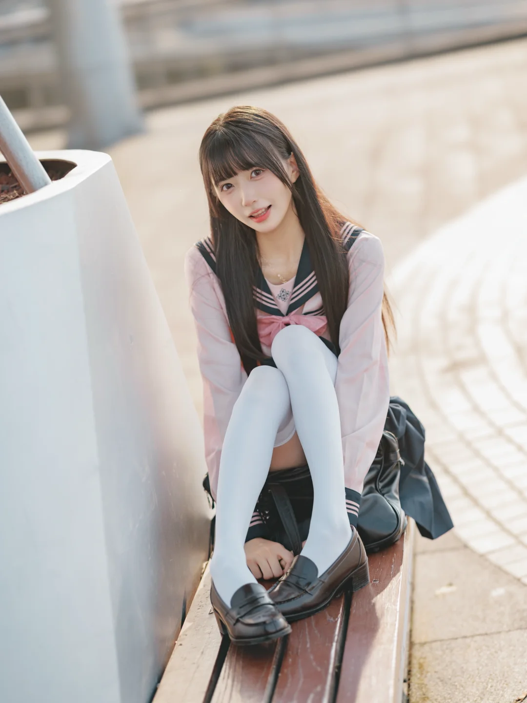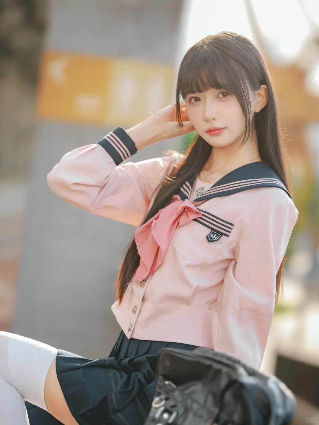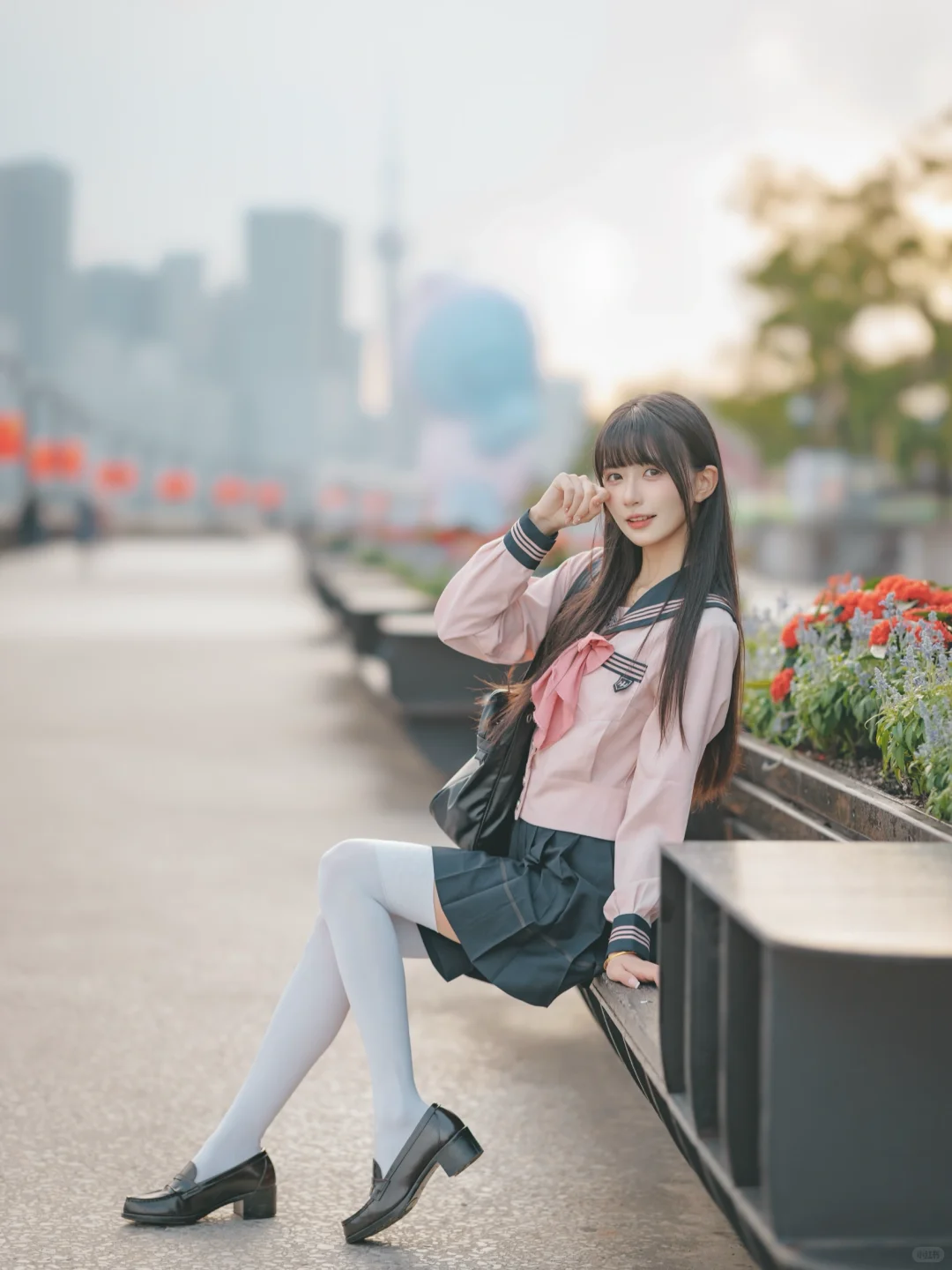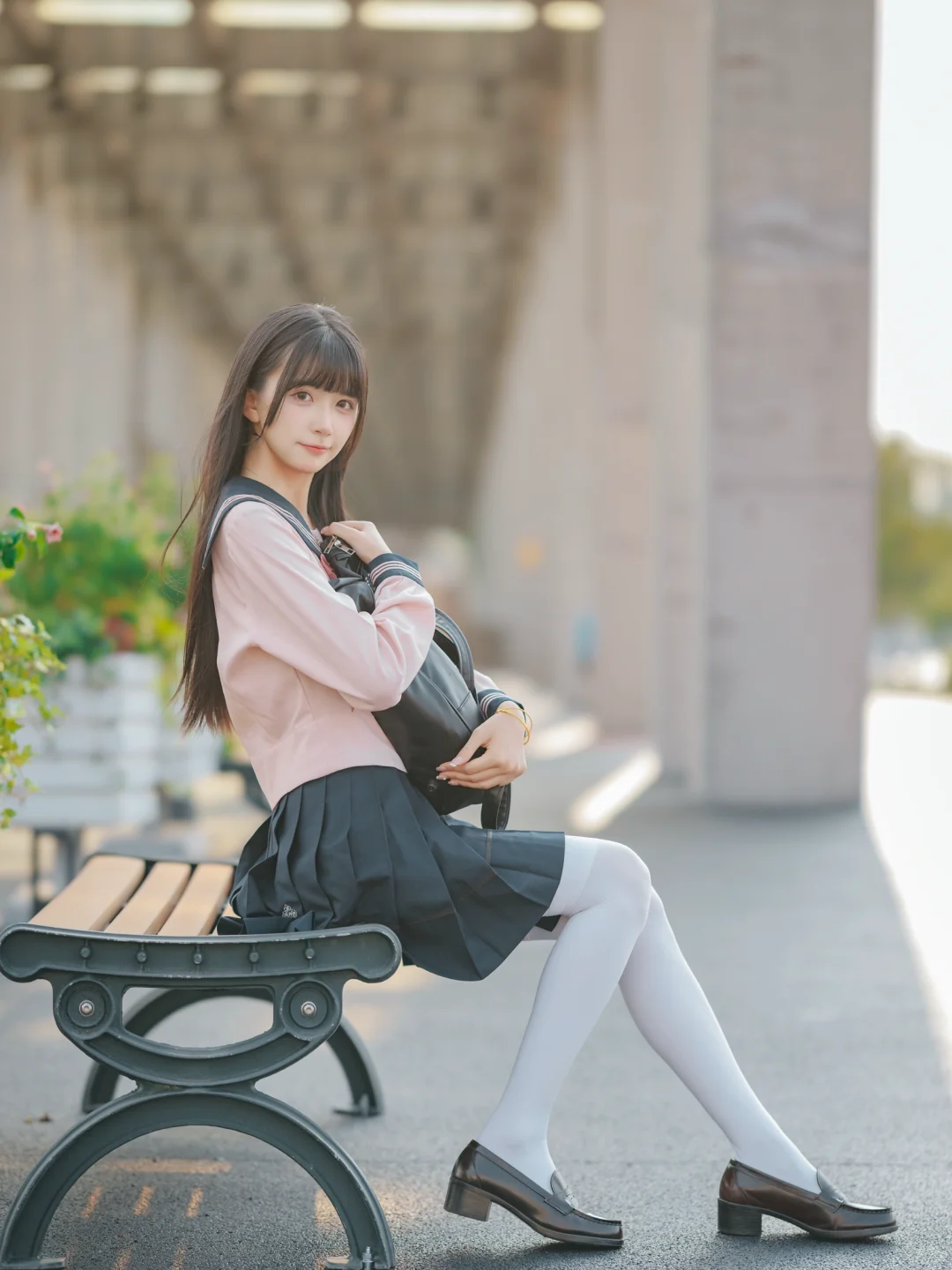 室外人像|在江边拍到了粉红色jk制服的vv!