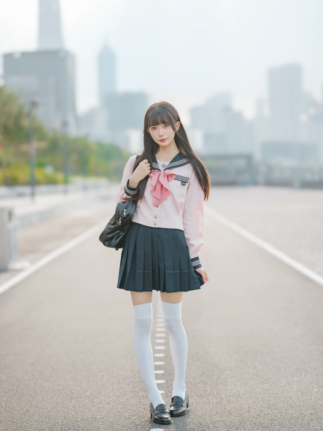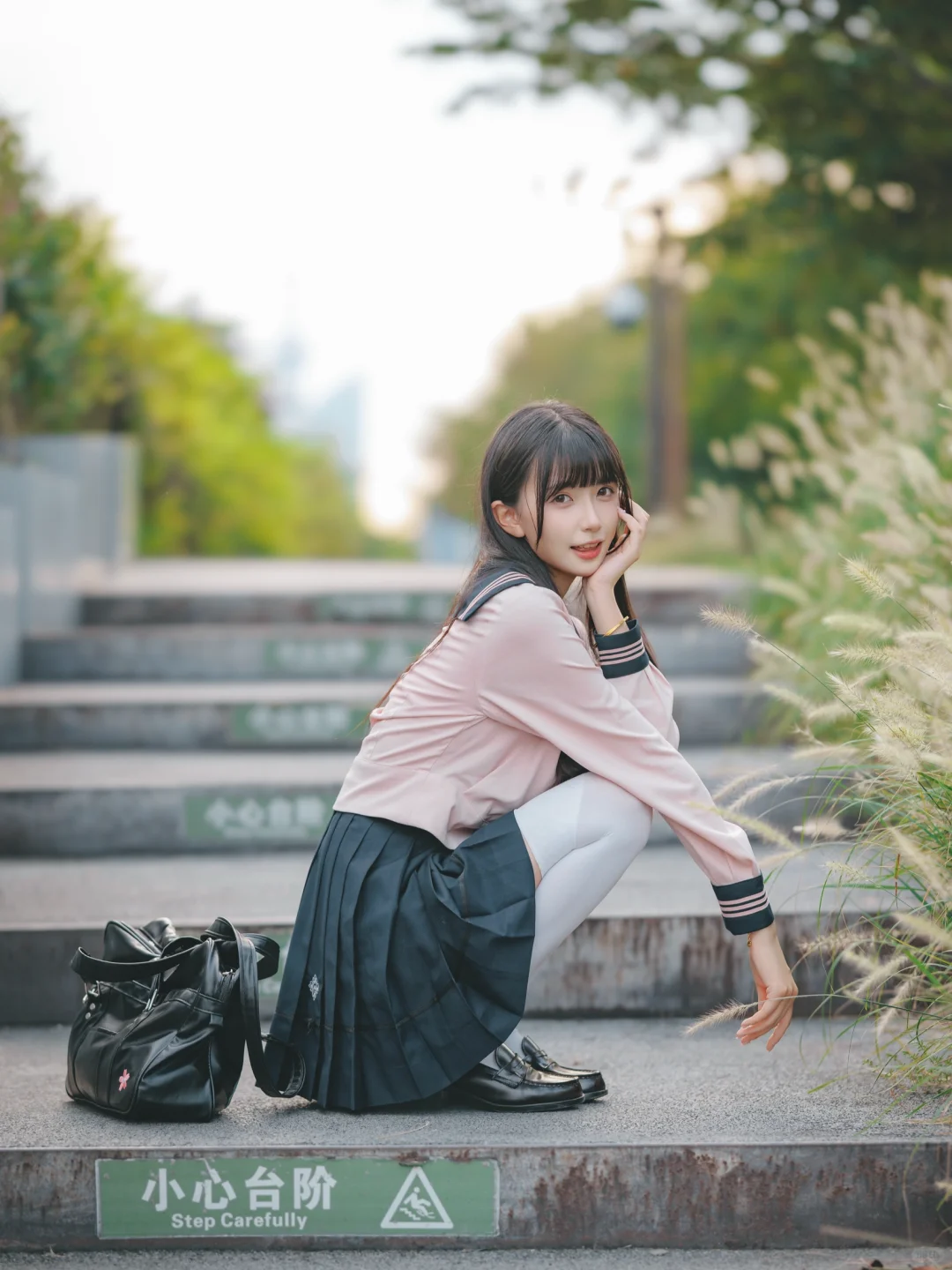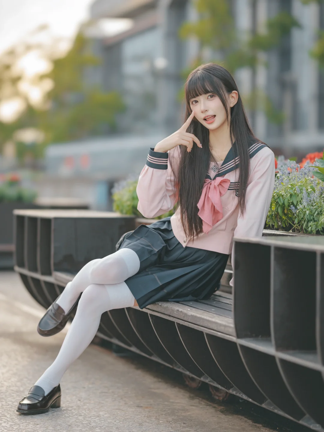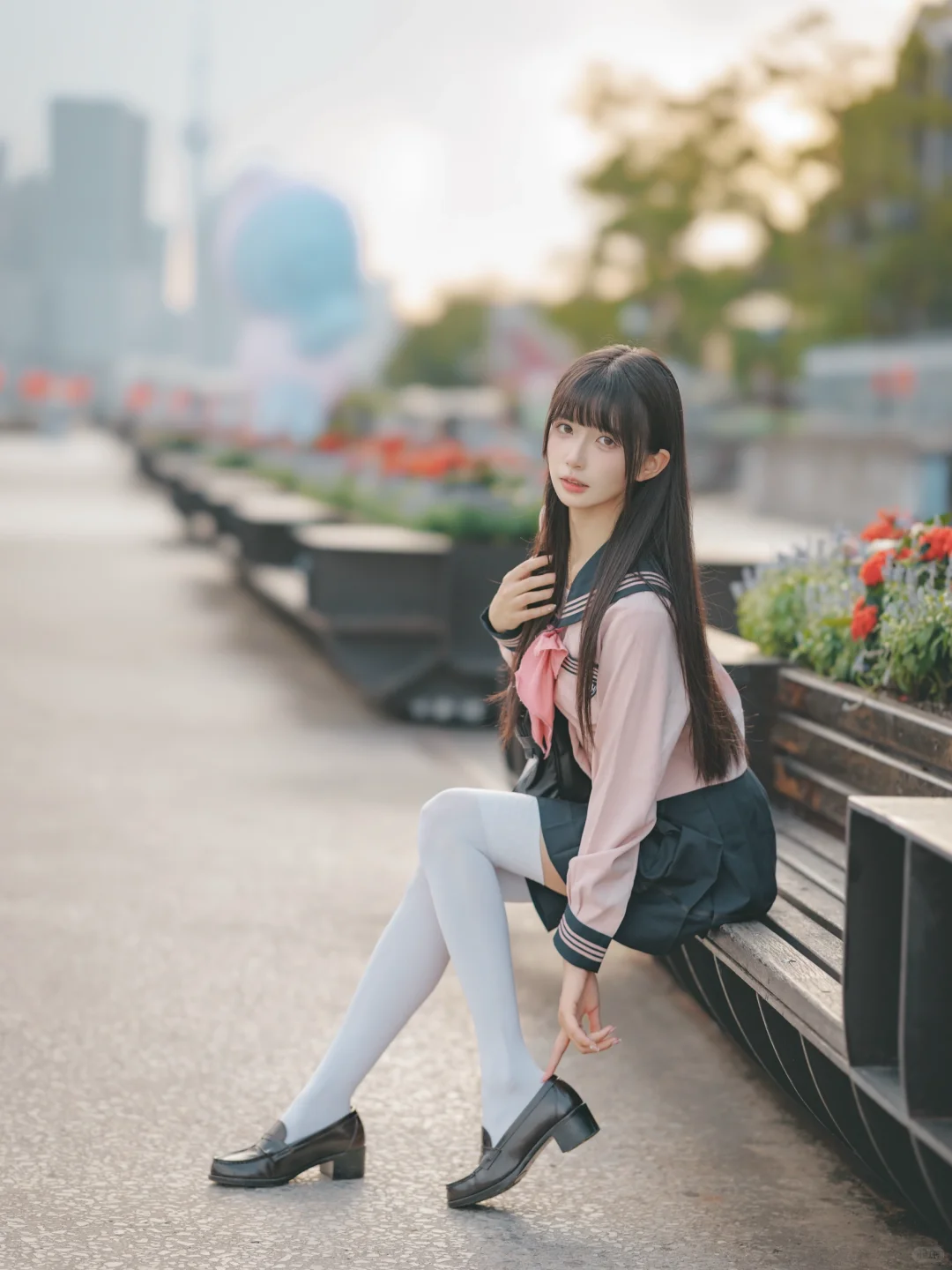 室外人像|在江边拍到了粉红色jk制服的vv!