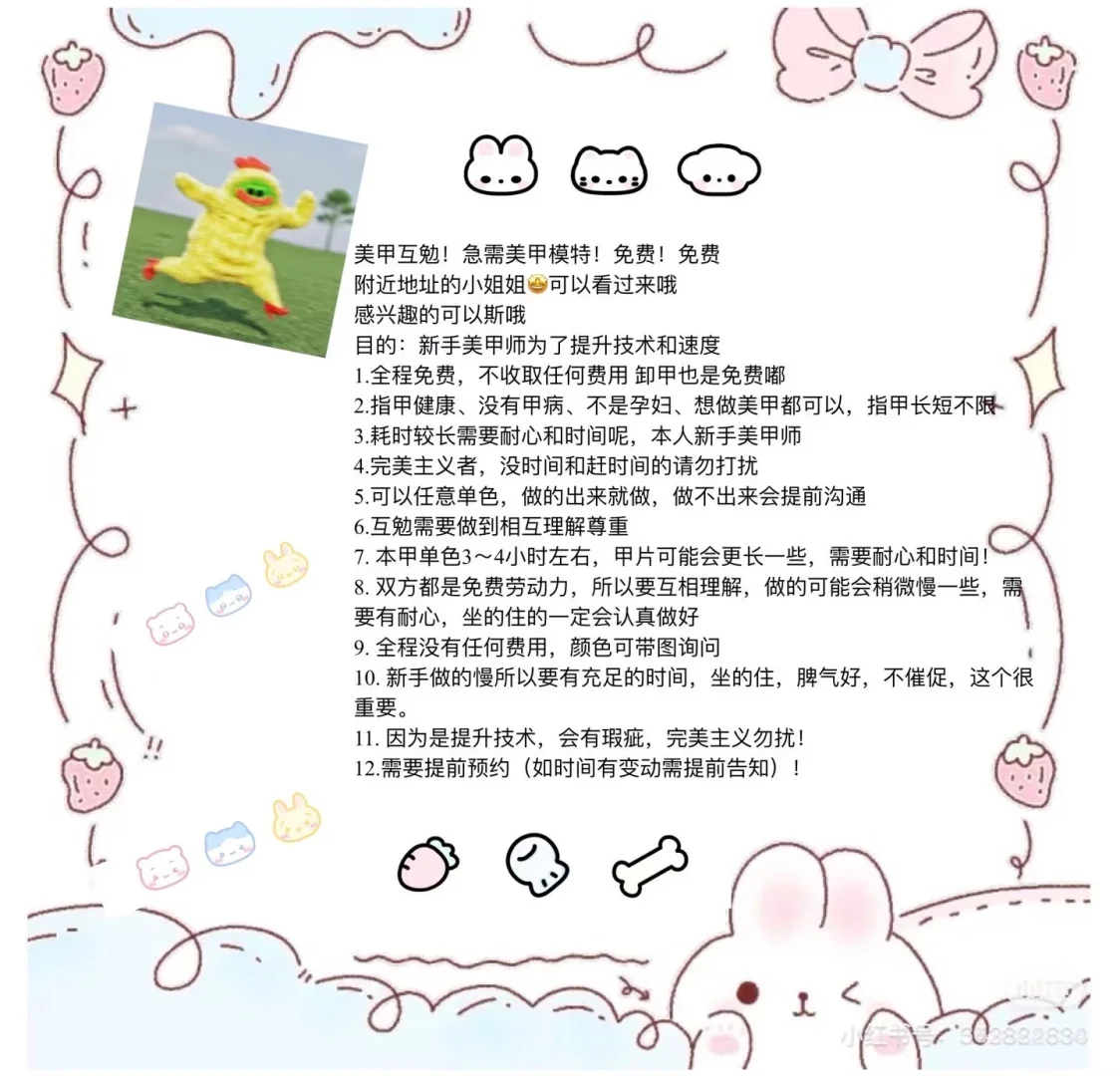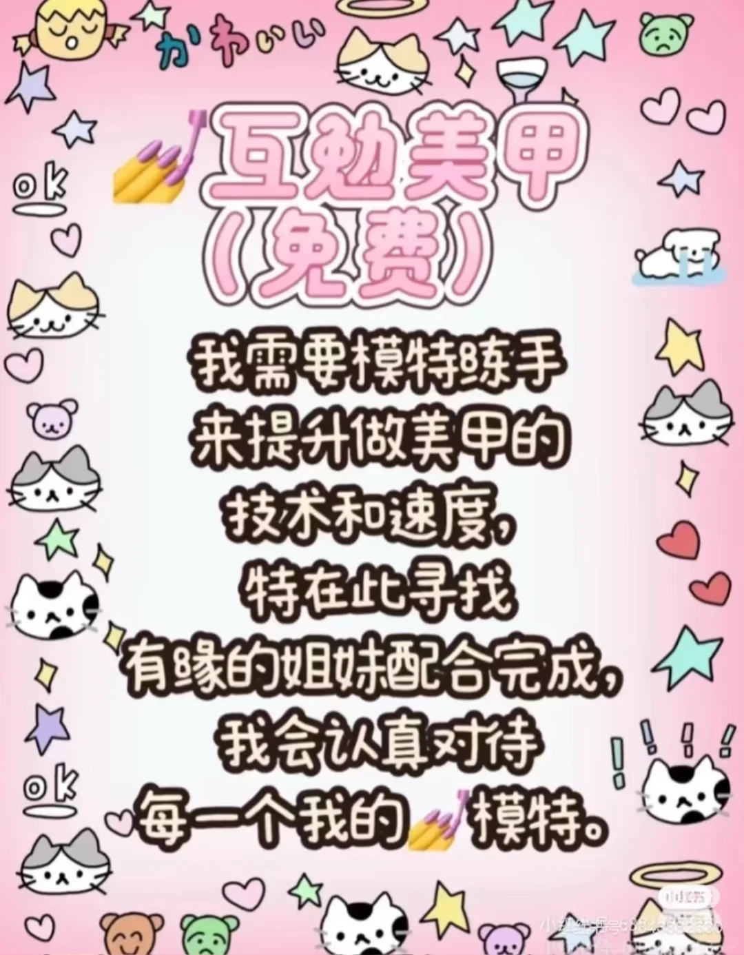 2.指甲健康、没有甲病、不是孕妇、想做美甲都可以,指甲长短不限(做完需要给小姐姐的美手拍个照)