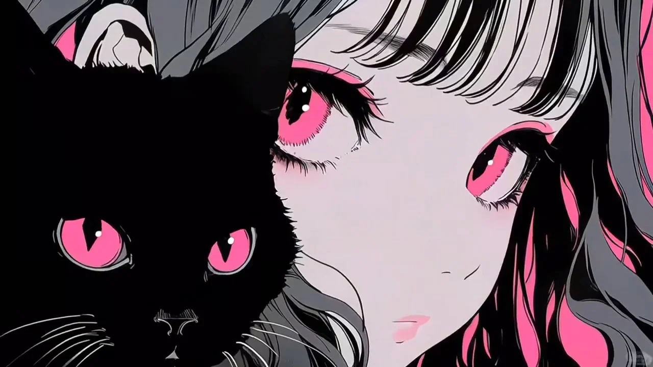 电脑iPad黑猫与少女动态壁纸~