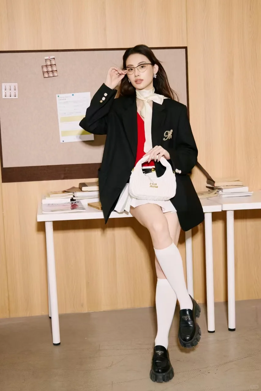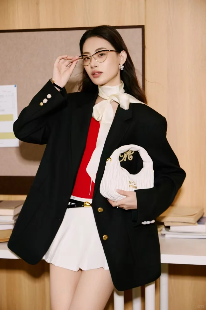 2️⃣黑西装红内搭的气场全开