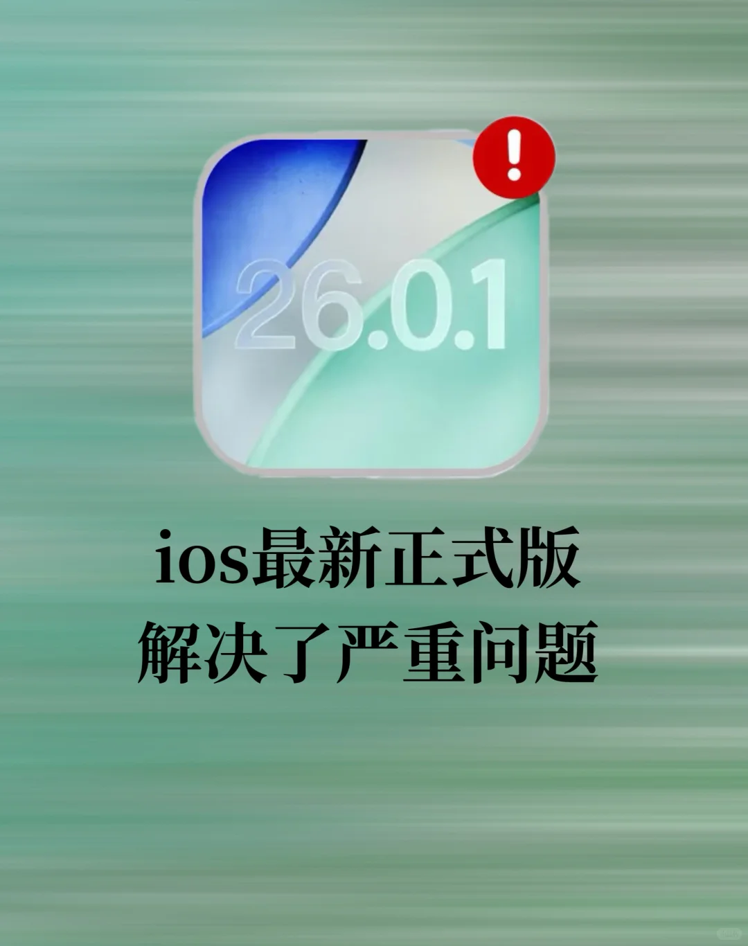 祖国妈妈庆生前夕~苹果发布了iOS 26.0.1系统,正式版后第一个小版本更新,虽然没有新功能,但是修复了iOS 26系统出现的众多 BUG