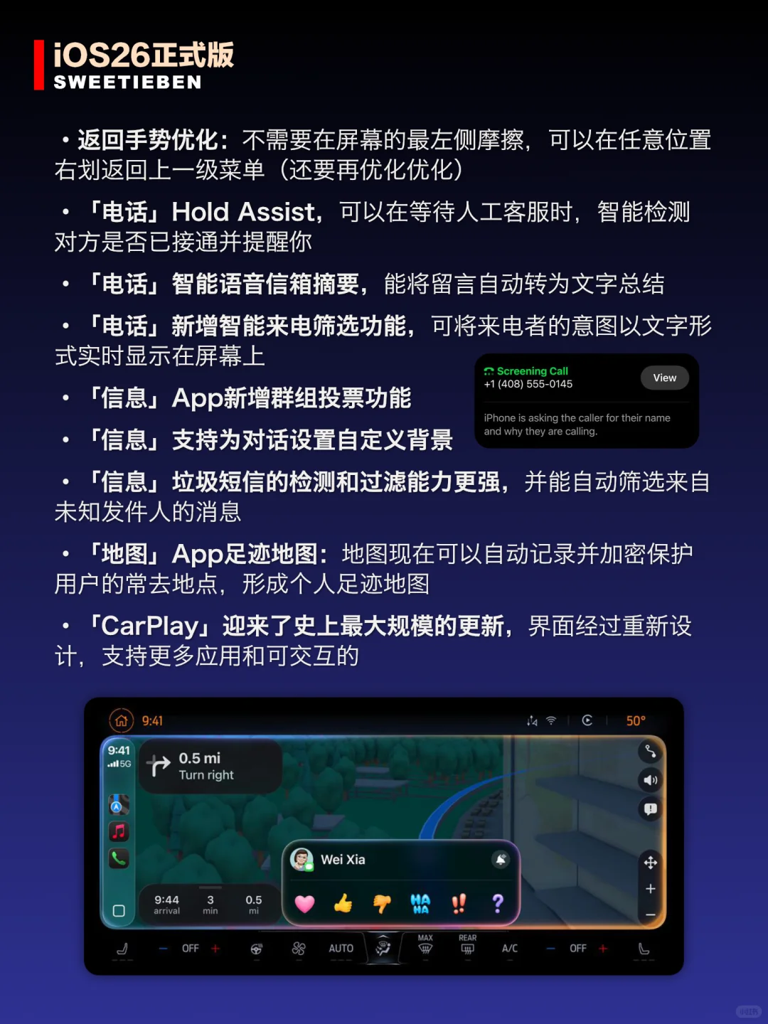 •「CarPlay」界面经过重新设计,支持更多应用和可交互的