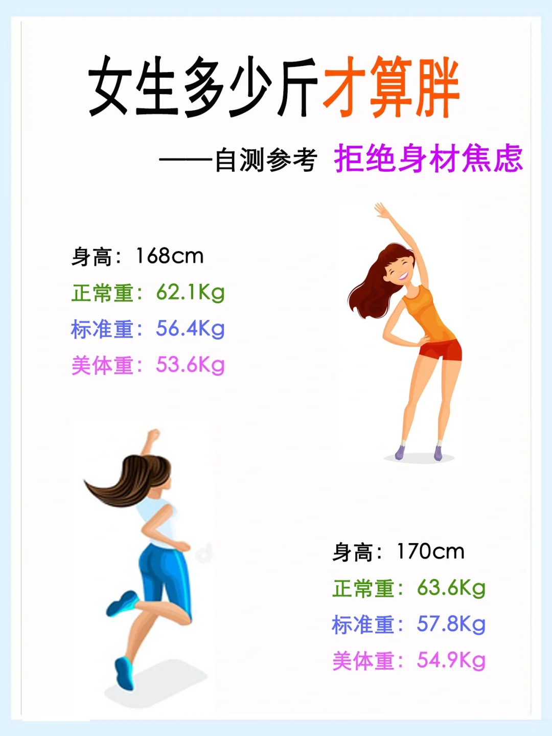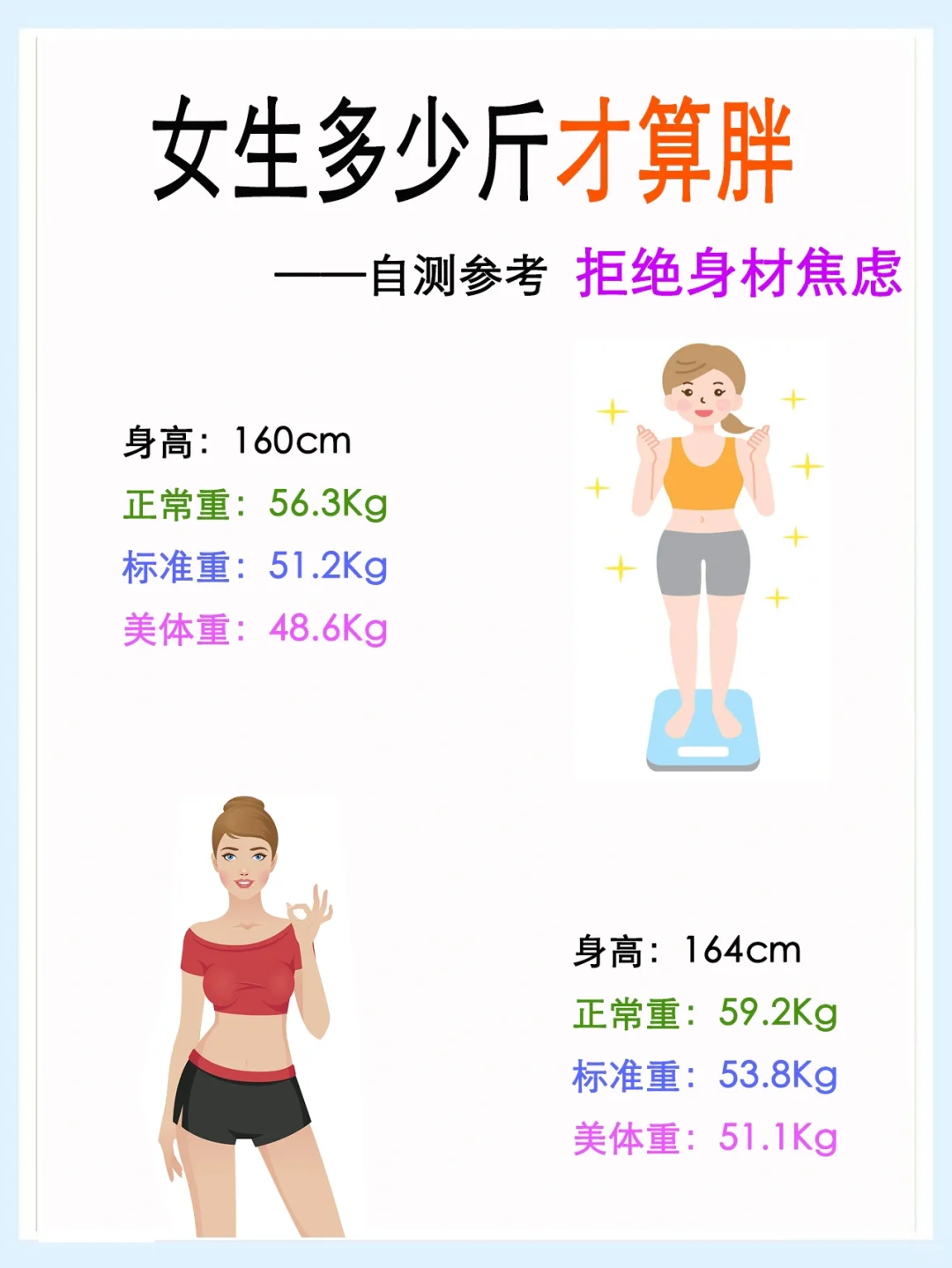 #体重 #变瘦变美变好看 #身材管理 #减肥逆袭 #身材焦虑 #拒绝焦虑 #女生必看 #减肥经验分享 #减肥方法 #BMI #正常女生体重 #标准体重 #美体体重
