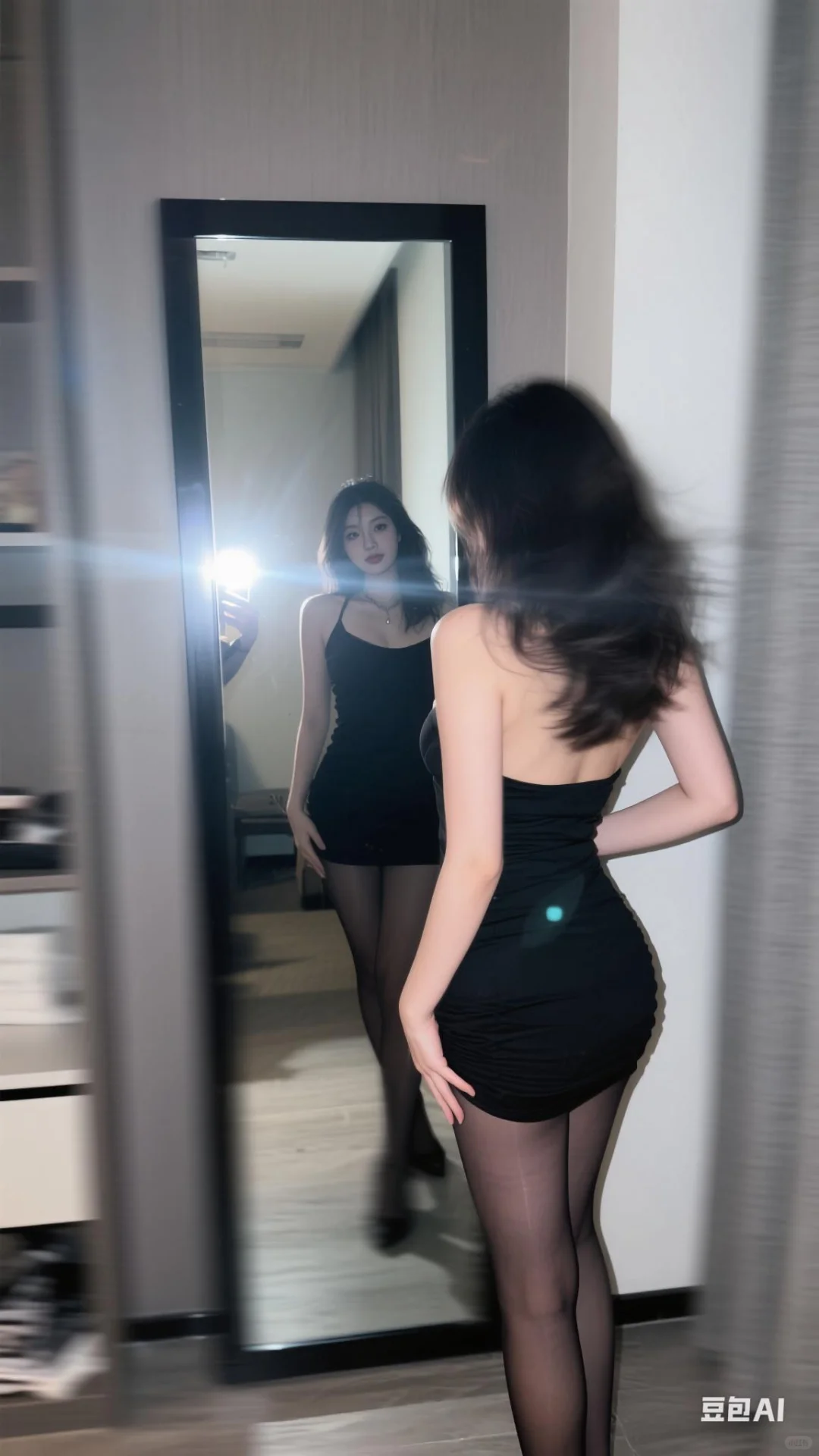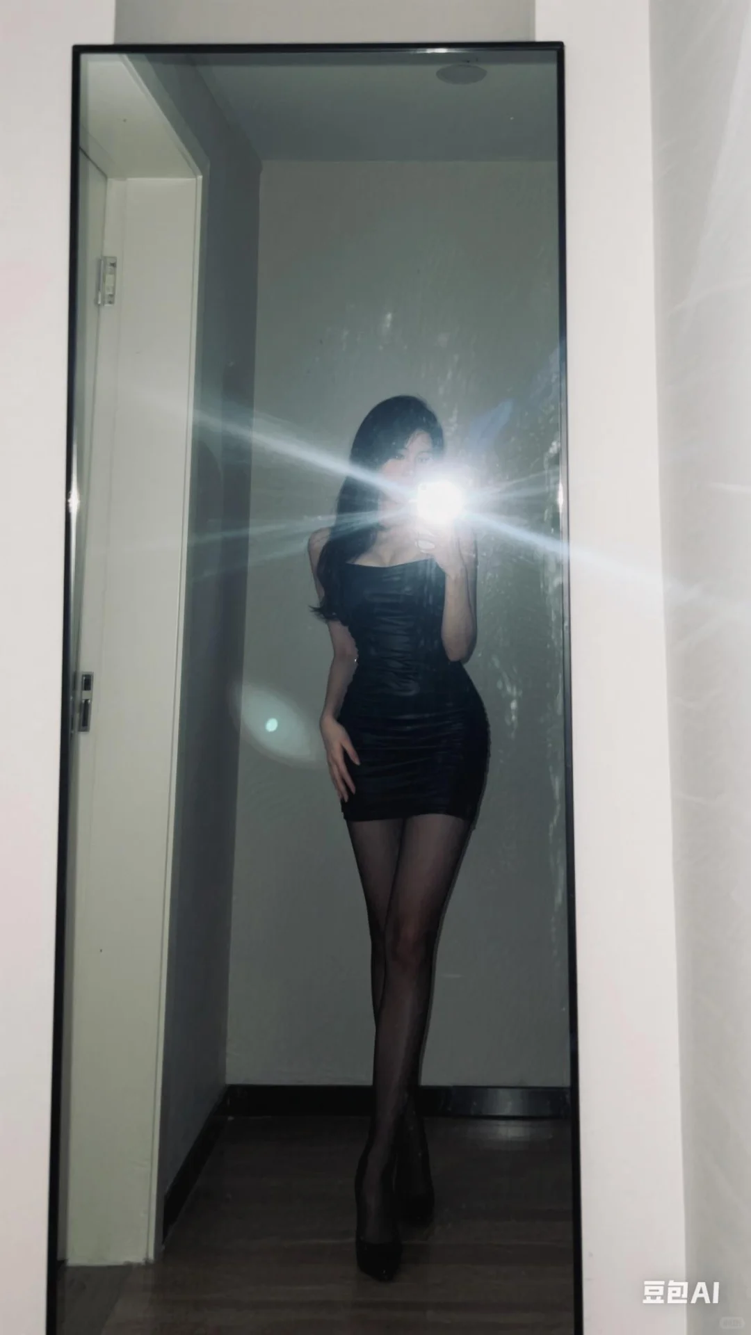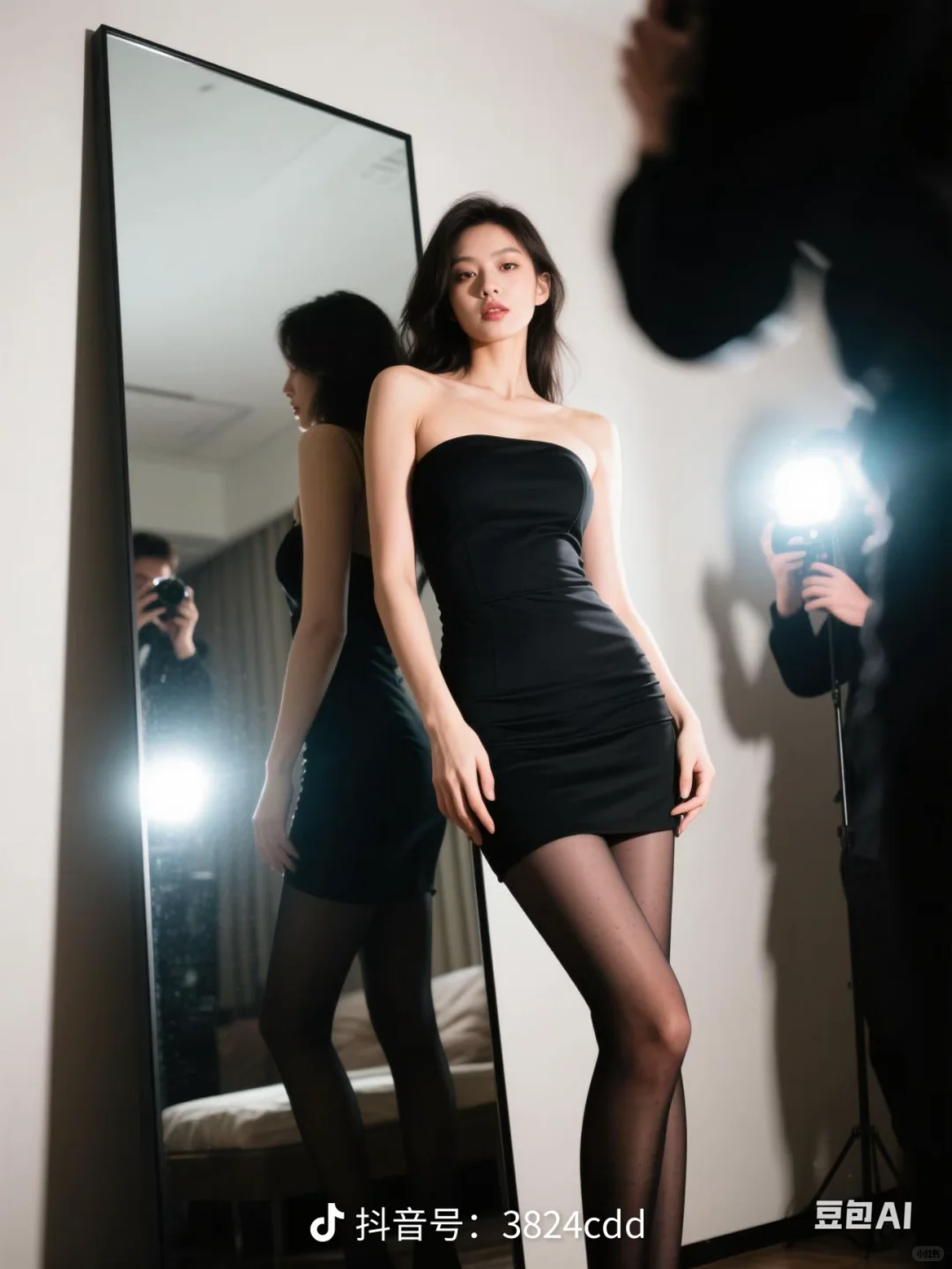 黑色短裙紧身衣,长黑丝,怎么摆poses。