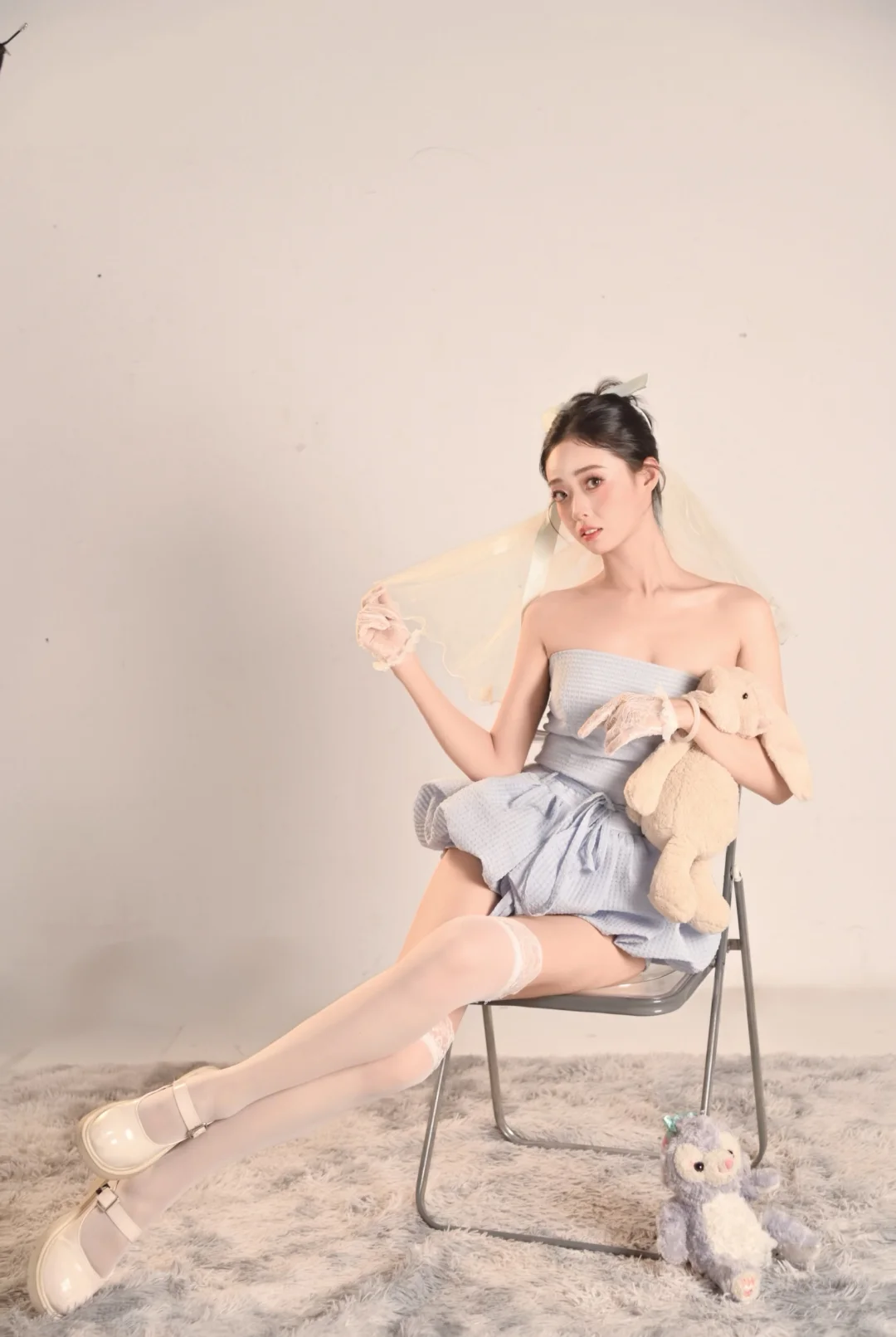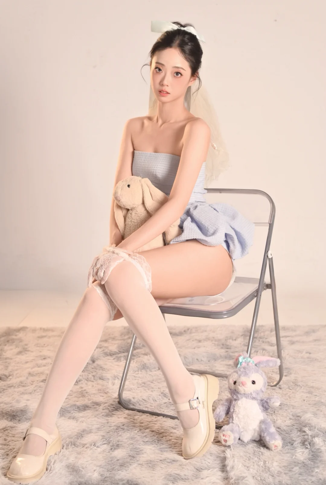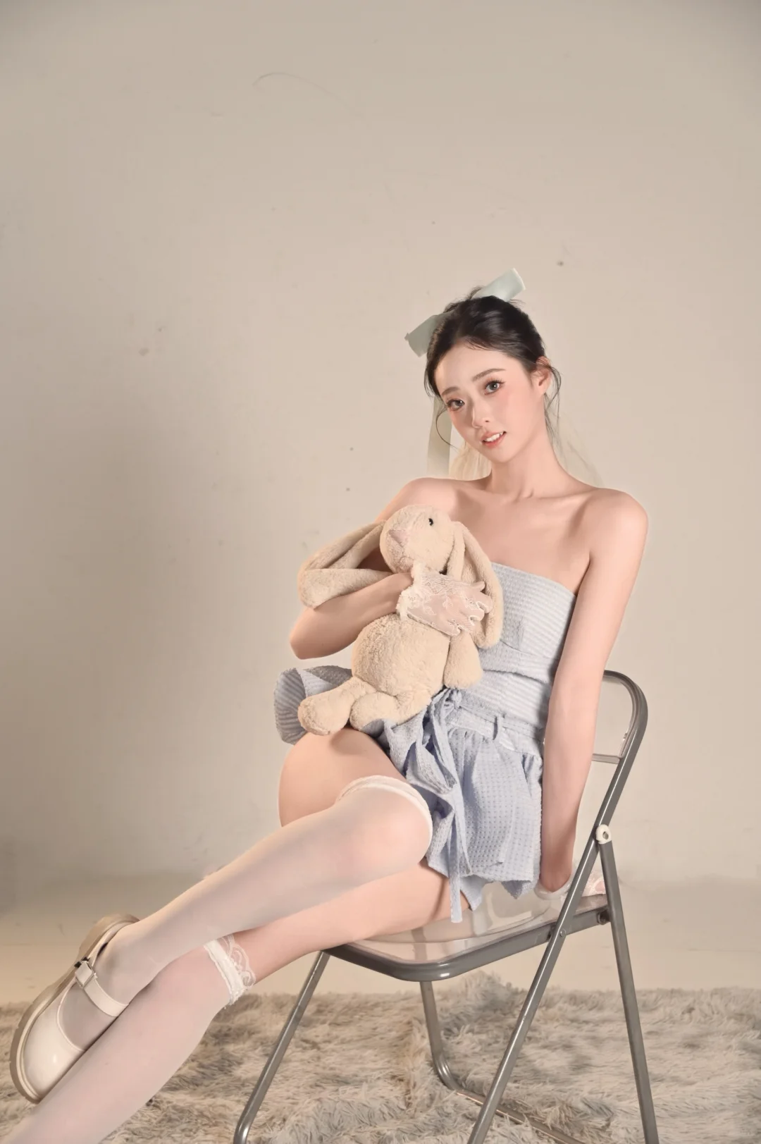 超好看的一组互免照片 蓝色垂耳兔妆容 可爱俏皮捏