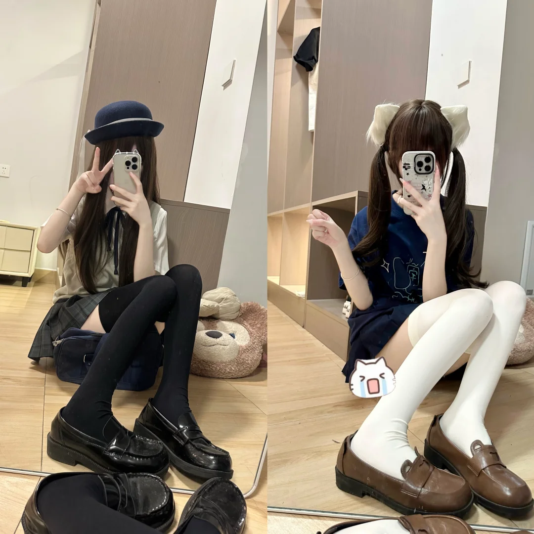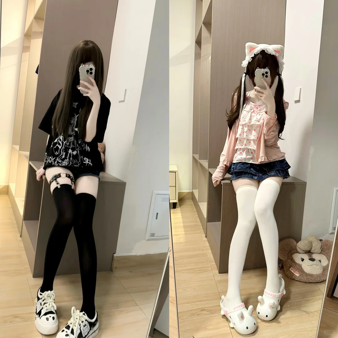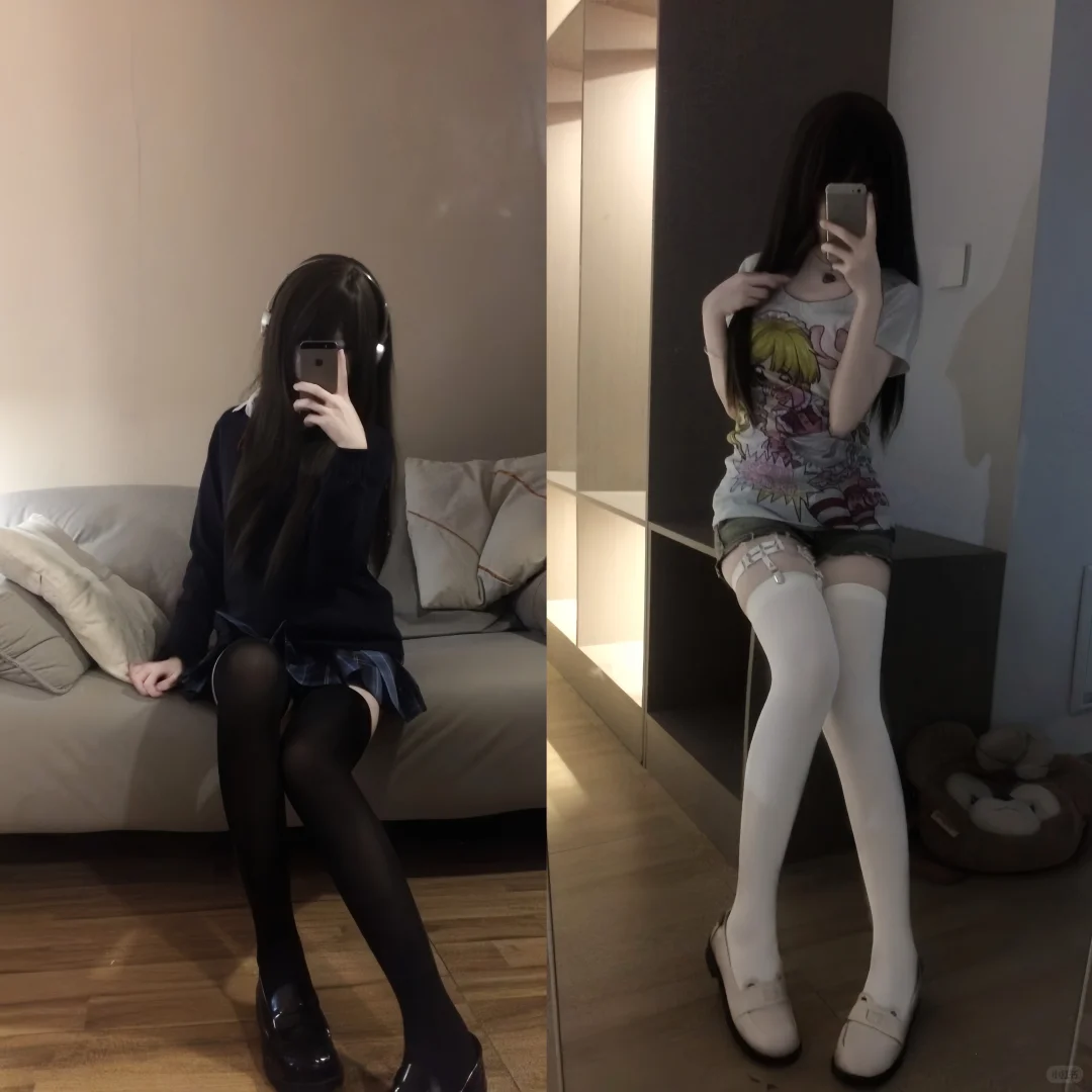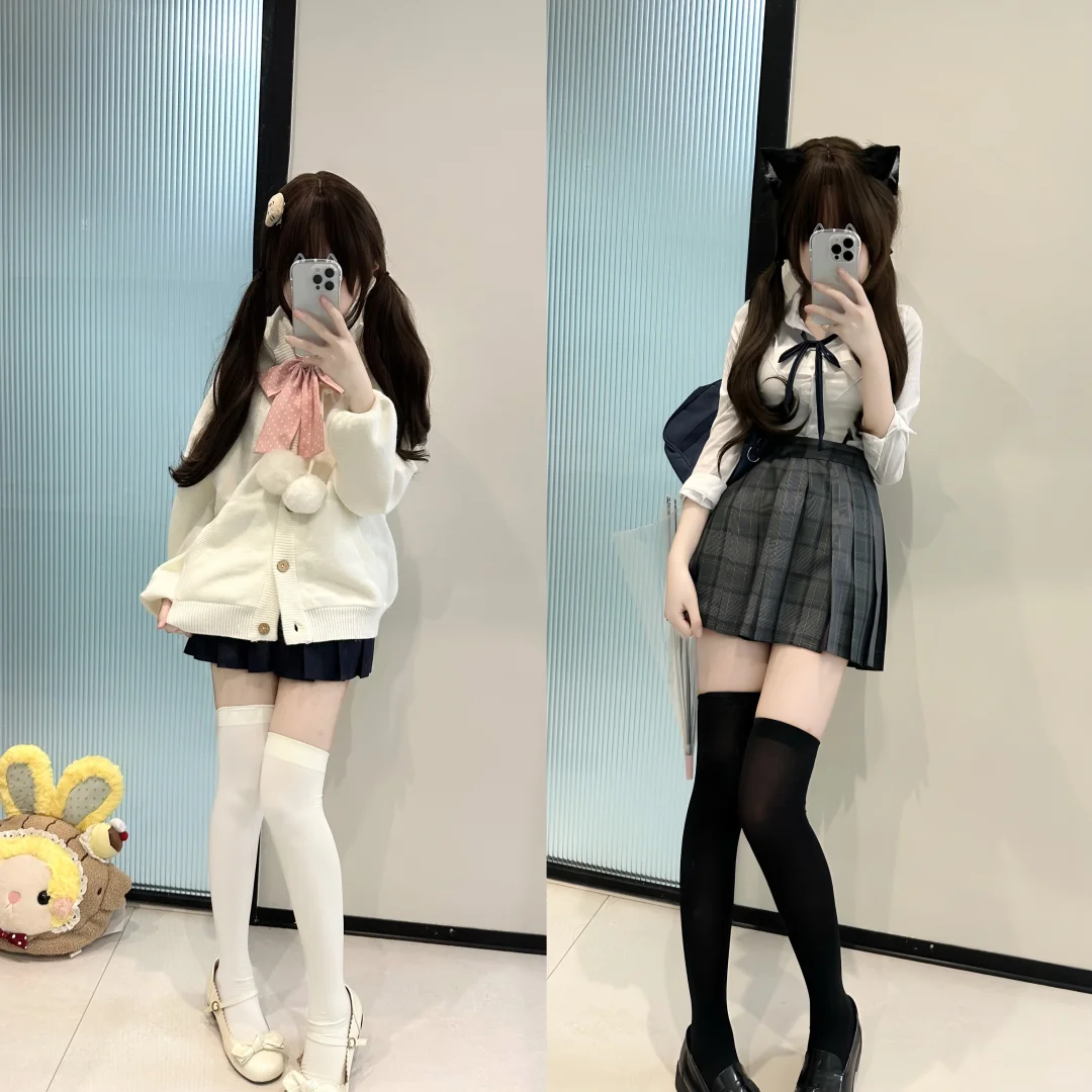 我比较喜欢买过膝70cm的 颜色是奶白色不会很死板拍照很好看,黑色穿上超级显瘦感觉配深色jk超级搭!