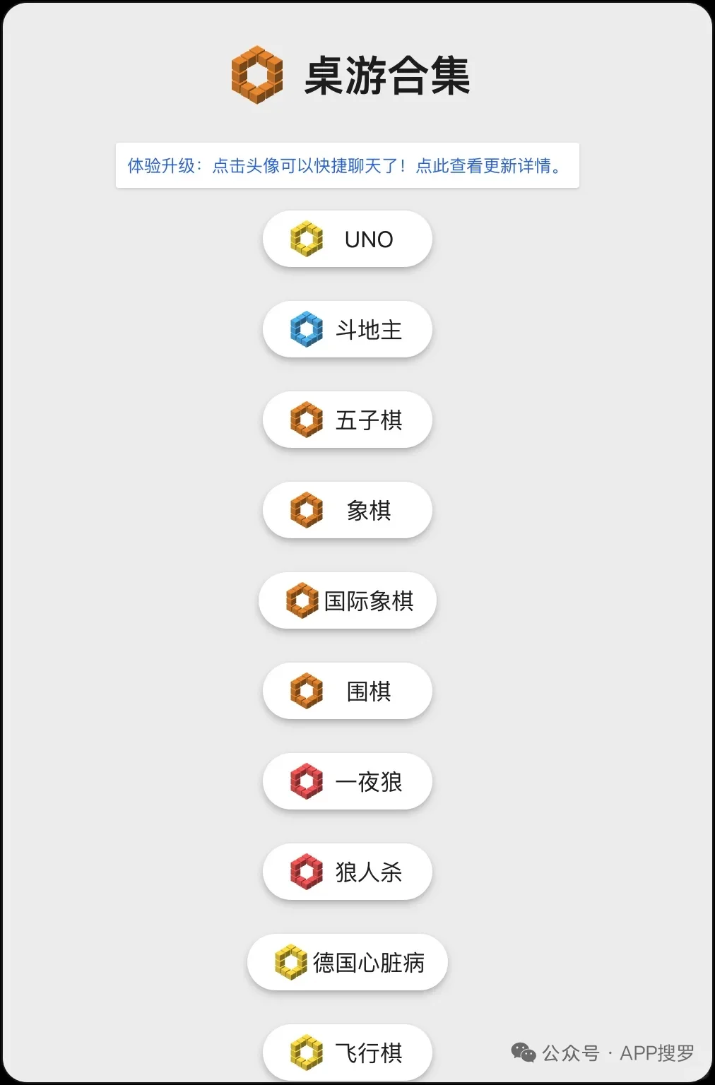 桌游合集是一个专注提供在线桌游游戏的小网站,可以在线玩五子棋、象棋、一夜狼、飞行棋、狼人杀···小游戏。可以邀请朋友一起玩,还可以边玩边聊天,无聊的时候很不错的一个选择。